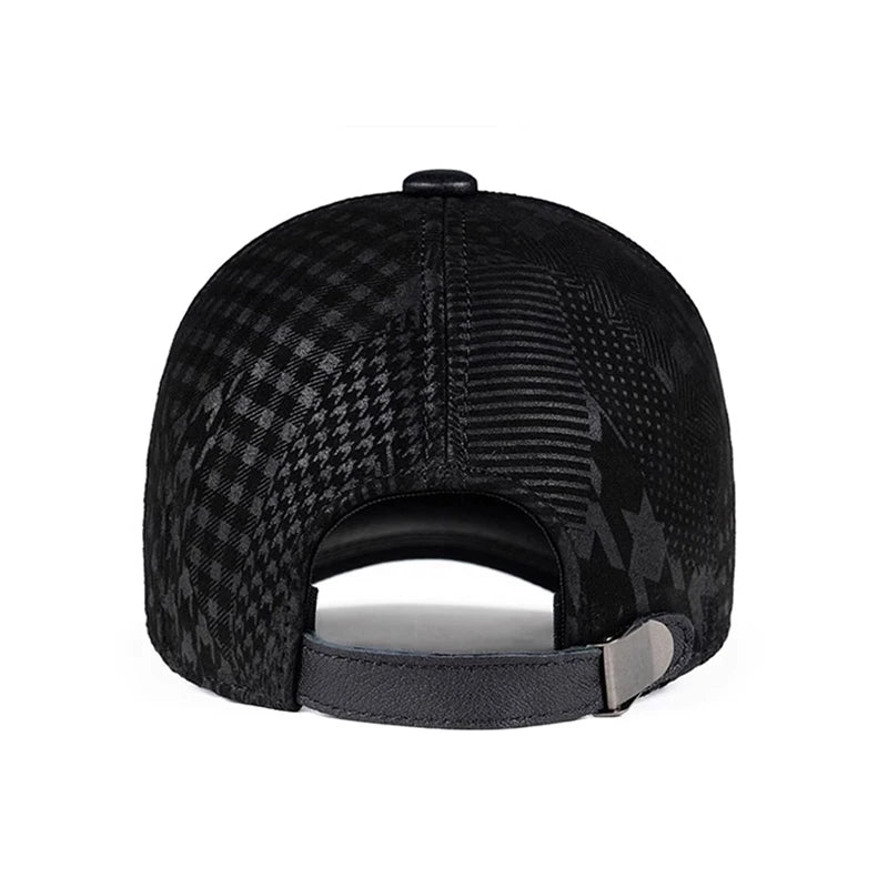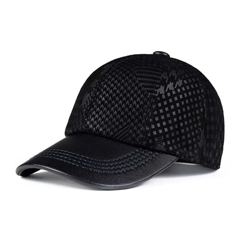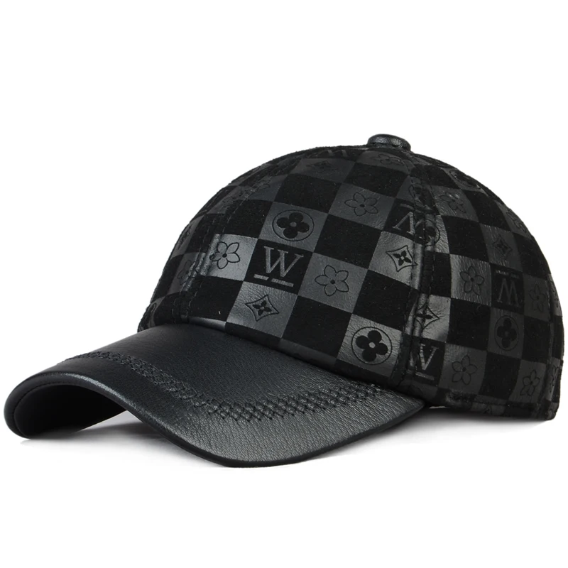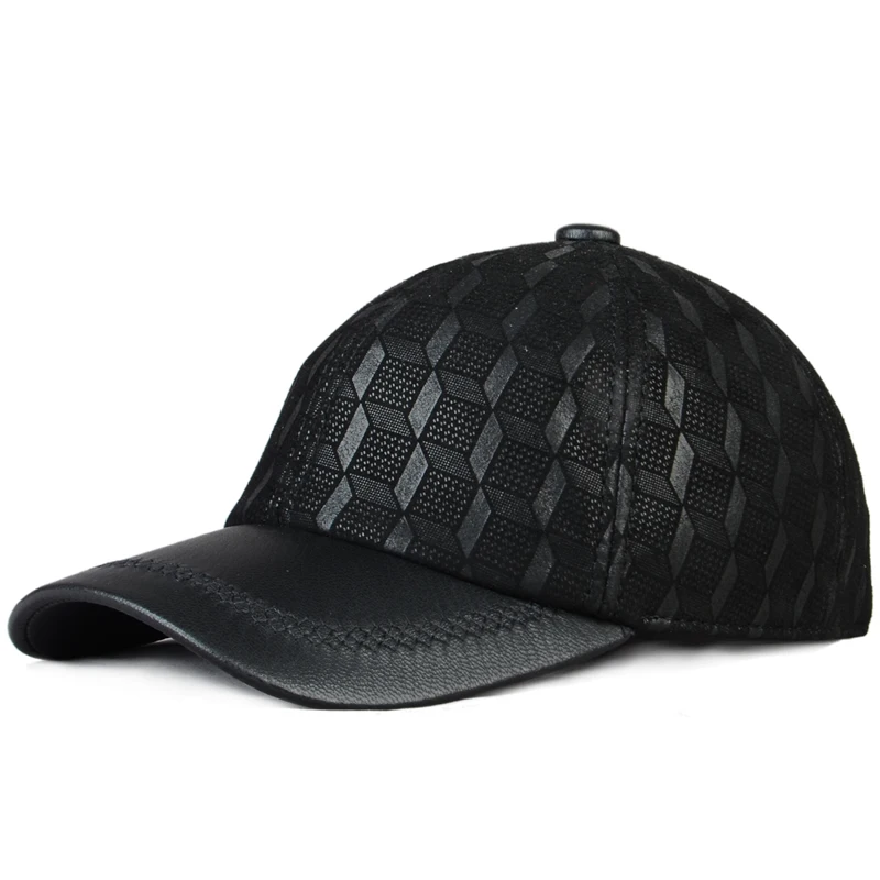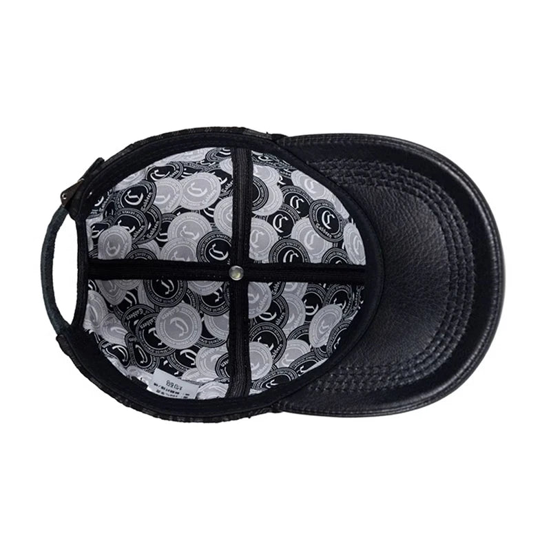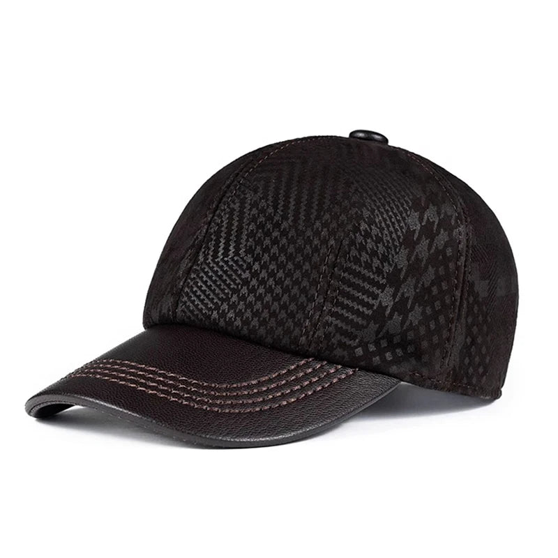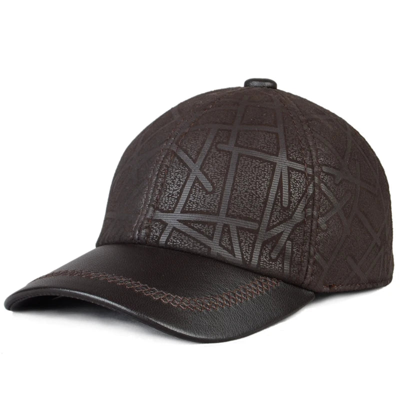 2024 Men Genuine Leather Baseball Caps Adjustable Cowhide Men Youth Duck Tongue Dad Hats 55-60cm Geometric printing