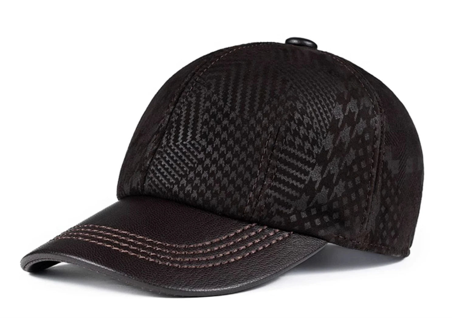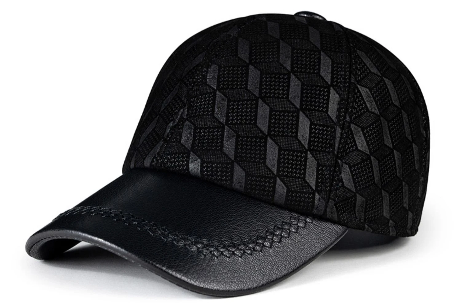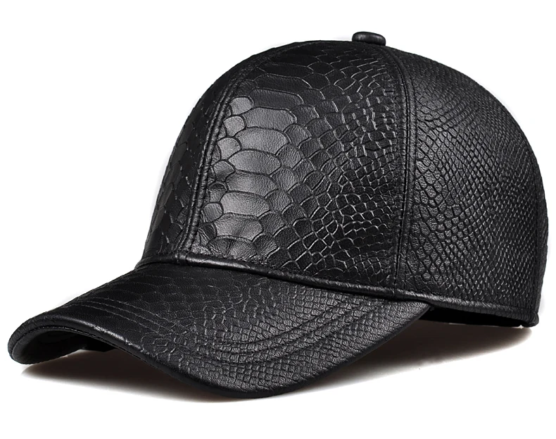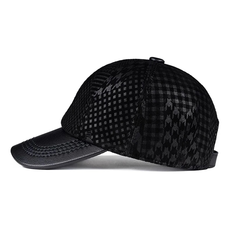 2024 Men Genuine Leather Baseball Caps Adjustable Cowhide Men Youth Duck Tongue Dad Hats 55-60cm Geometric printing