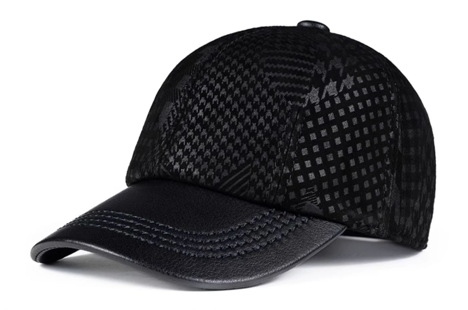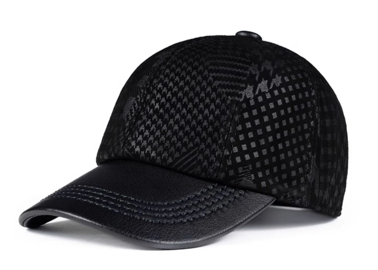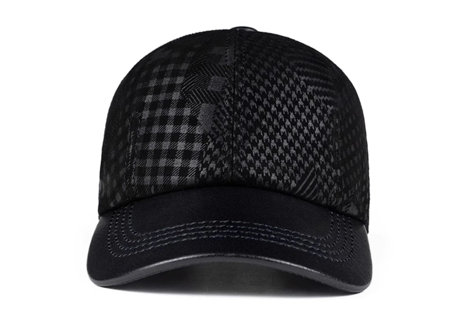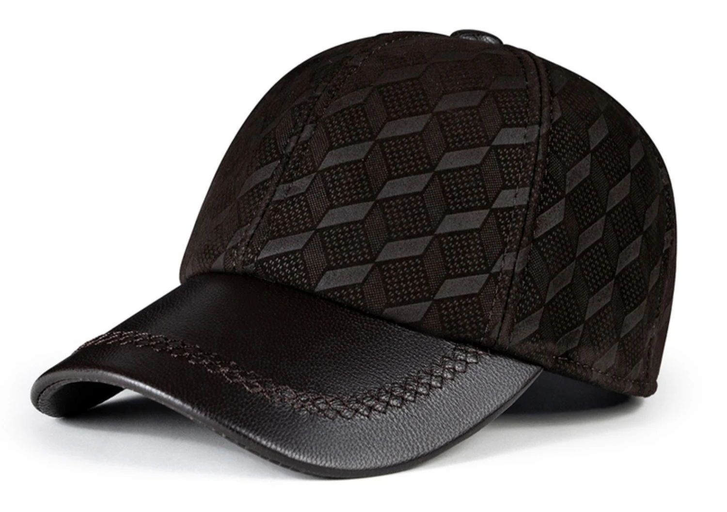 2024 Men Genuine Leather Baseball Caps Adjustable Cowhide Men Youth Duck Tongue Dad Hats 55-60cm Geometric printing