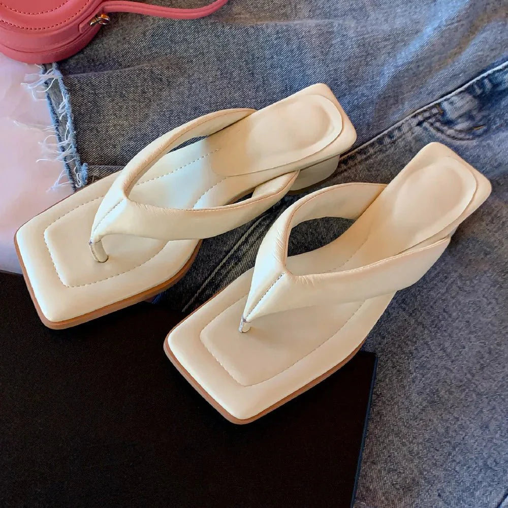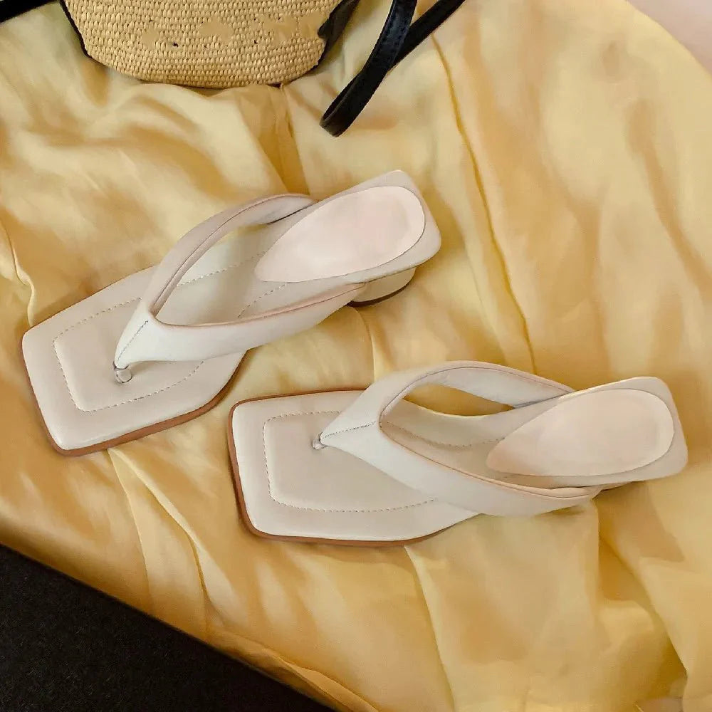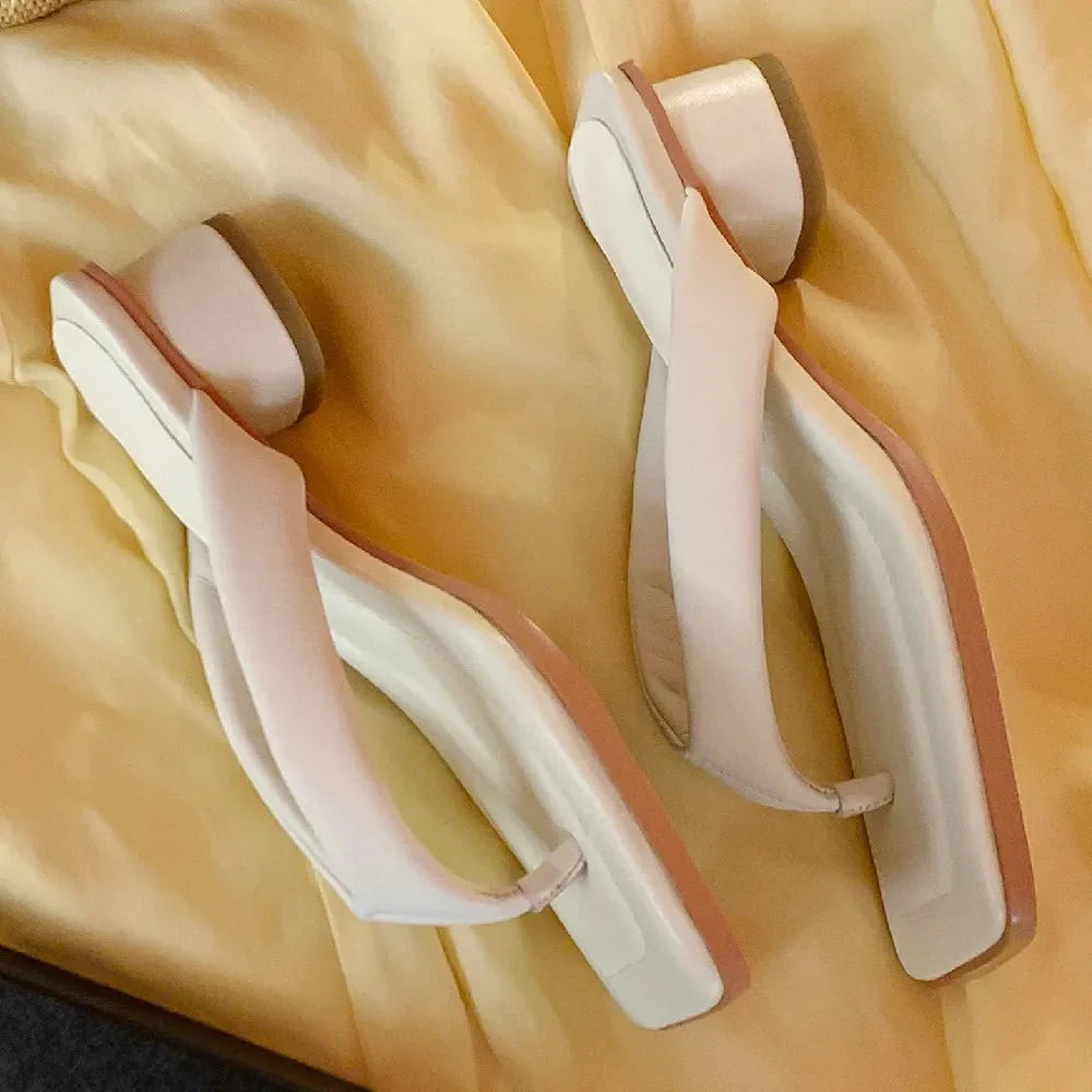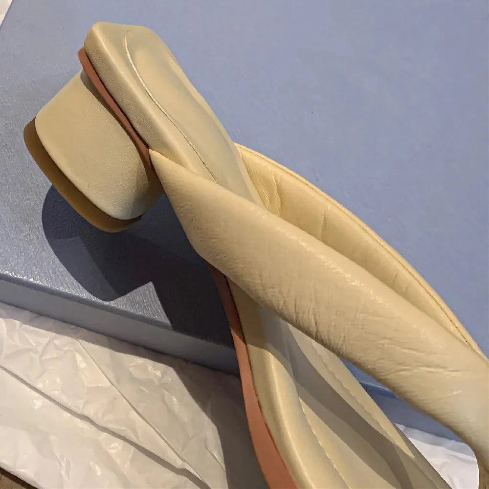 Claquette Moderne Crème Minimaliste à Talon Bas