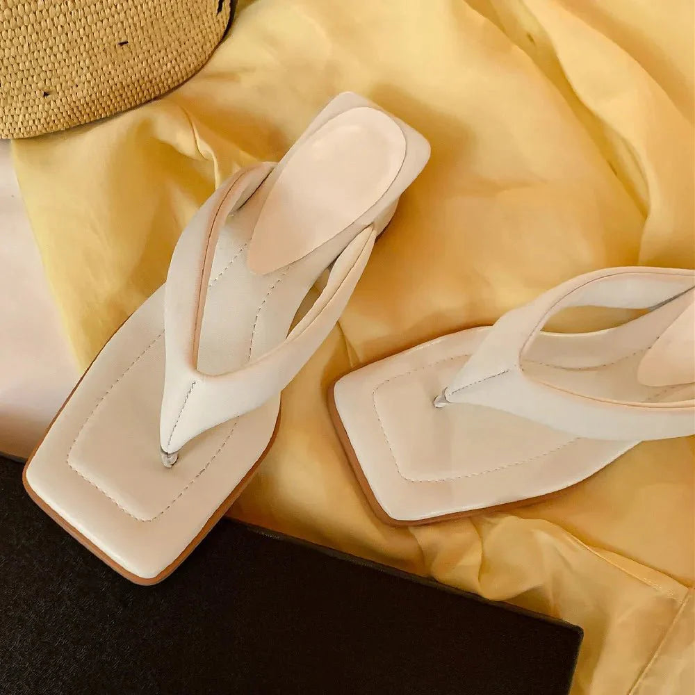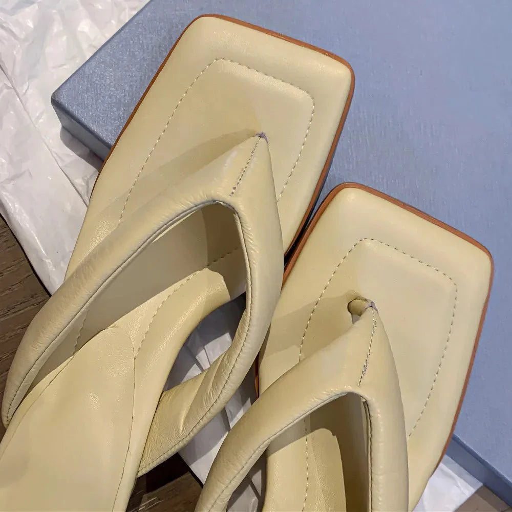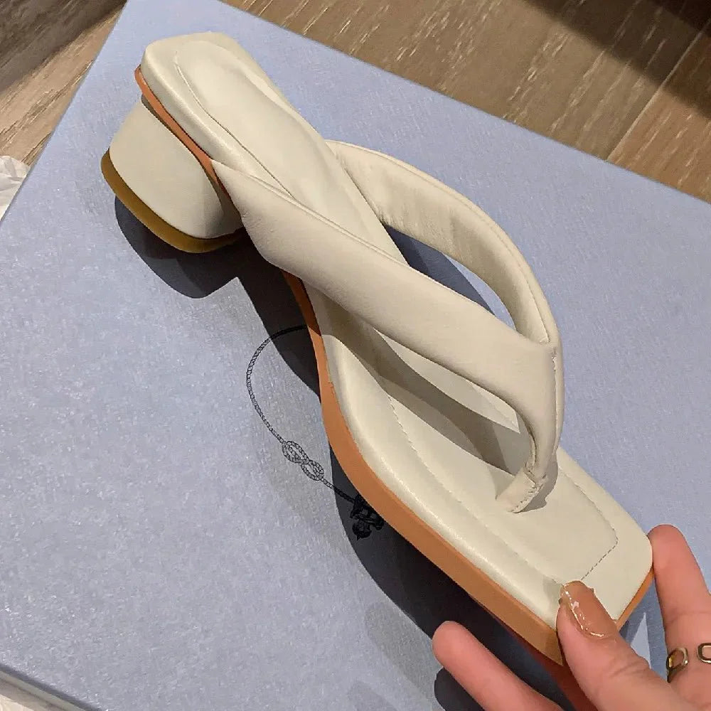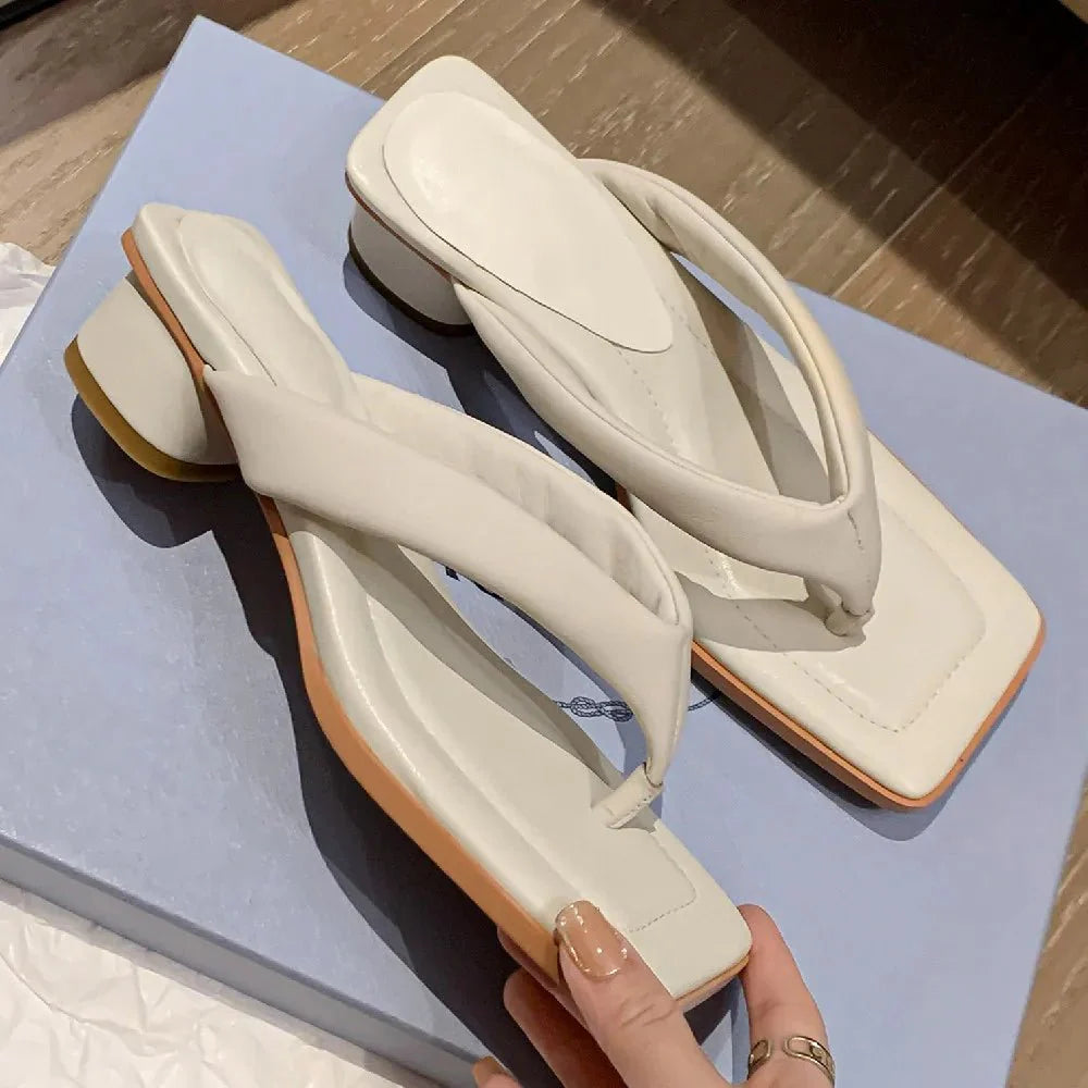 Claquette Moderne Crème Minimaliste à Talon Bas