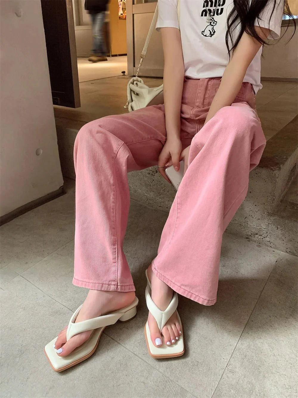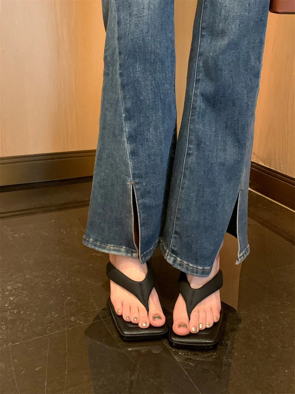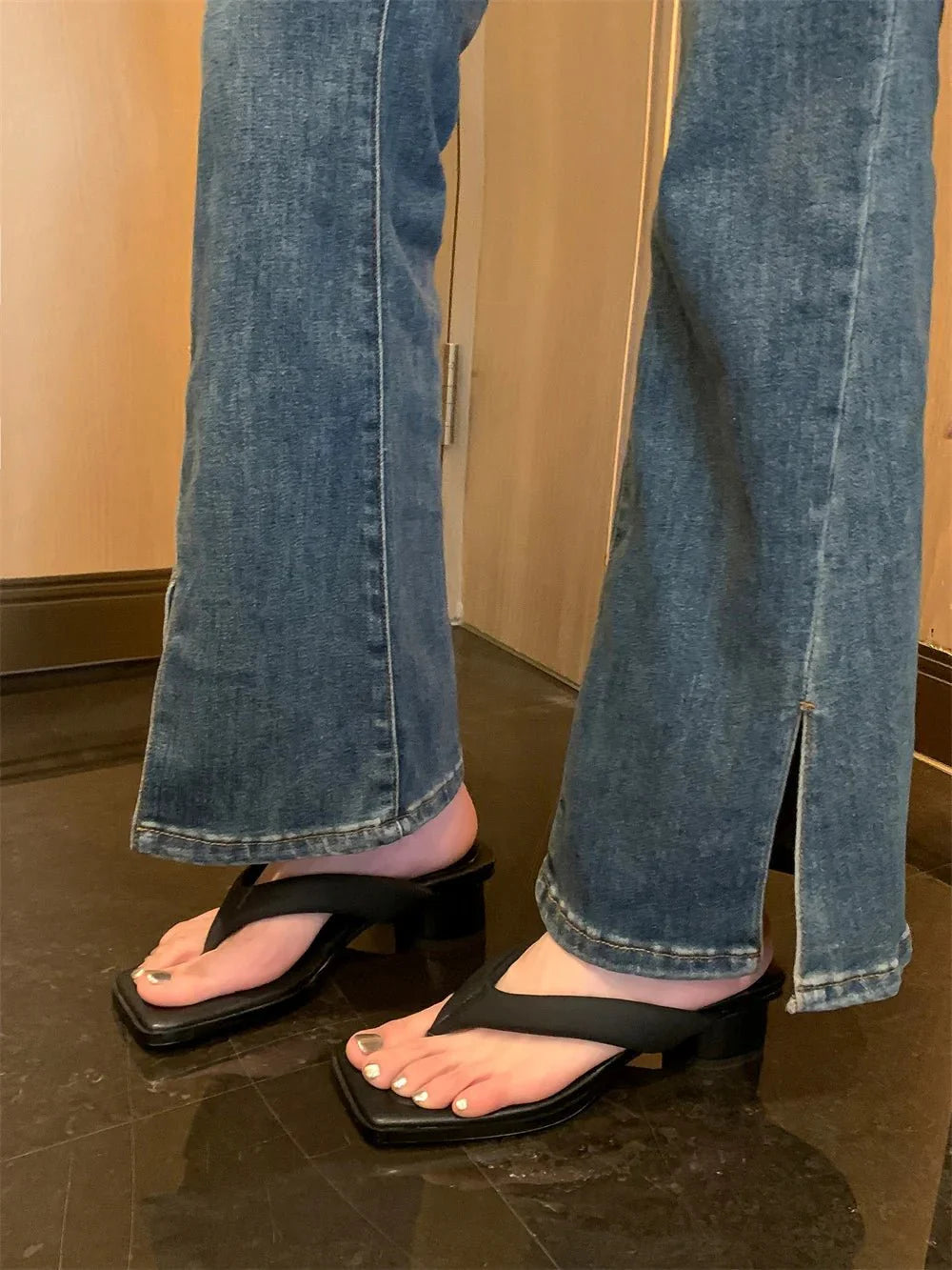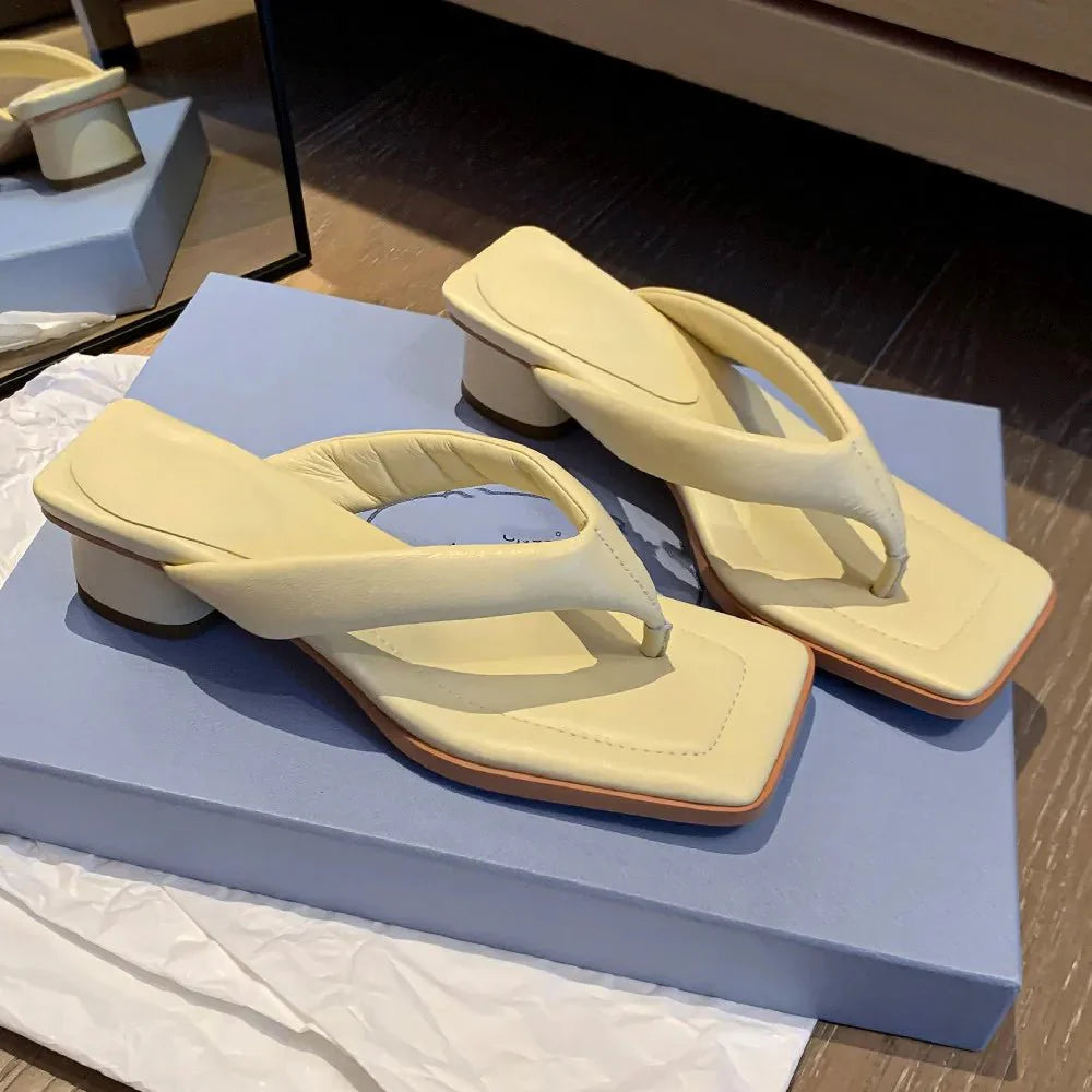 Claquette Moderne Crème Minimaliste à Talon Bas