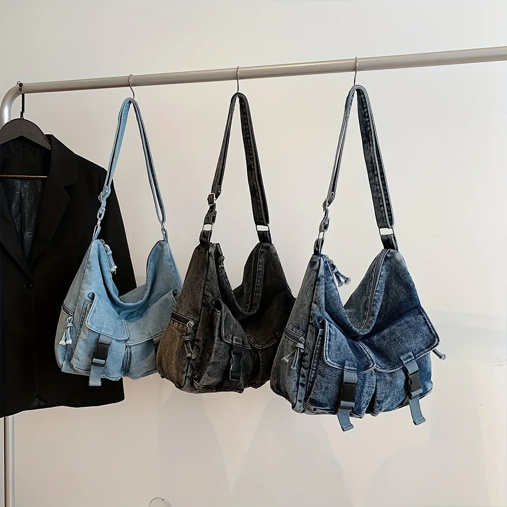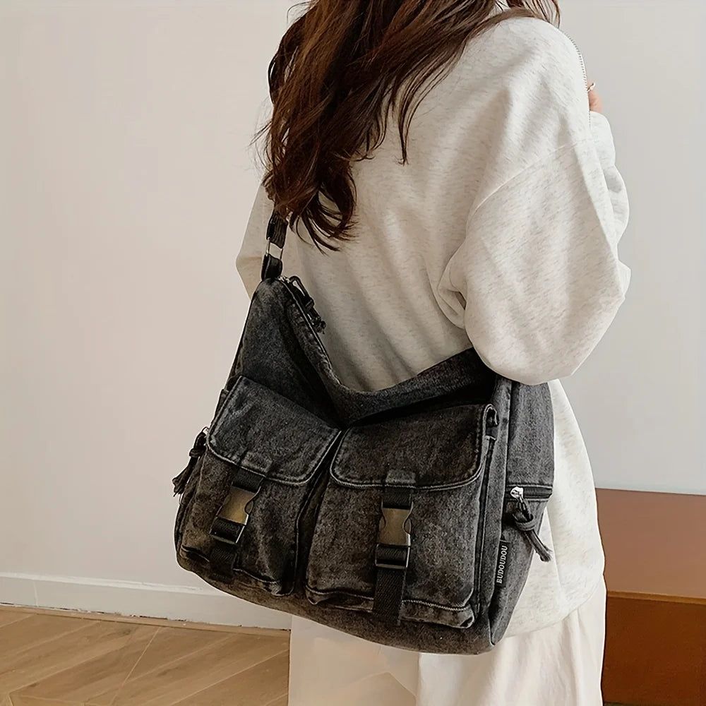 Denim bag women's new trendy fashion class commuting bag shoulder bag large capacity crossbody bag