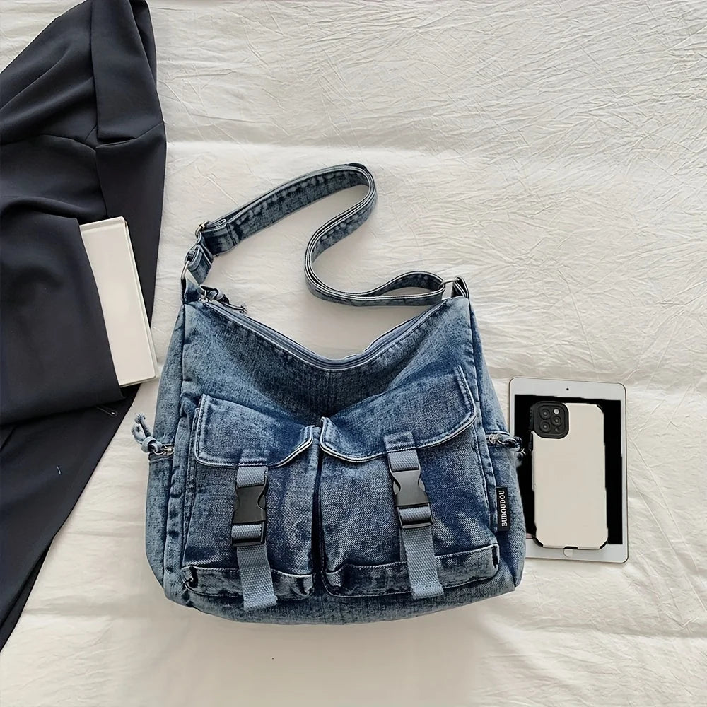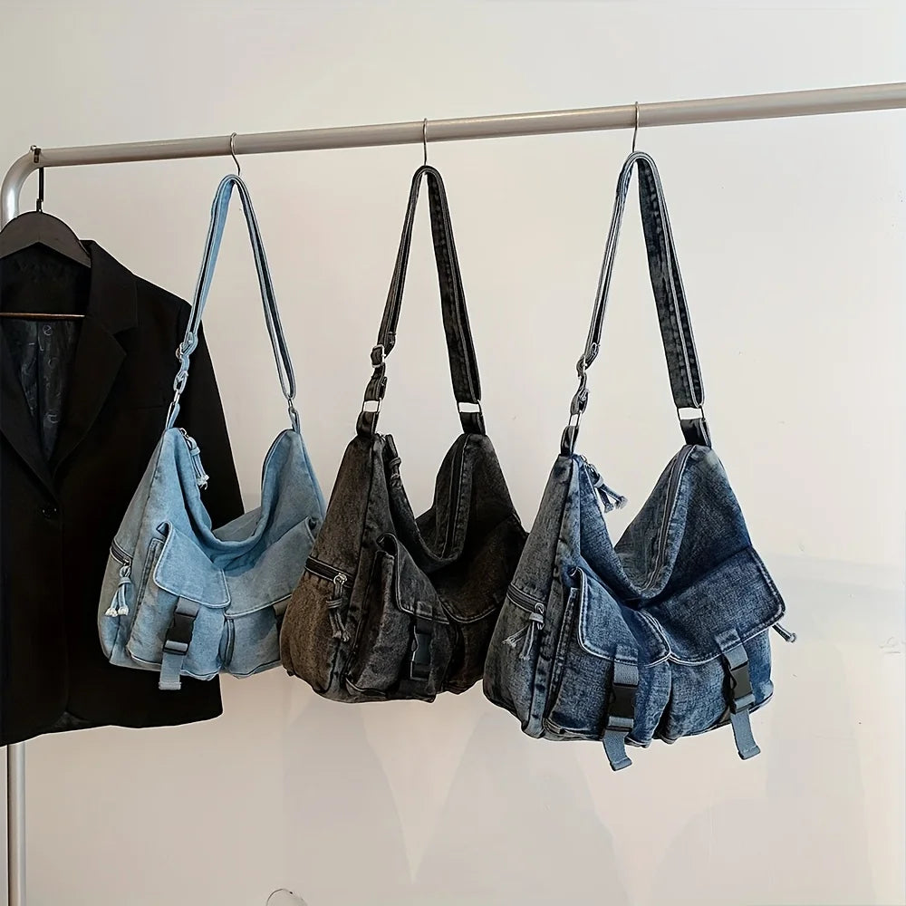 Denim Bag Women's New Trendy Fashion Class Commuting Bag Shoulder Bag Large Capacity Crossbody Bag