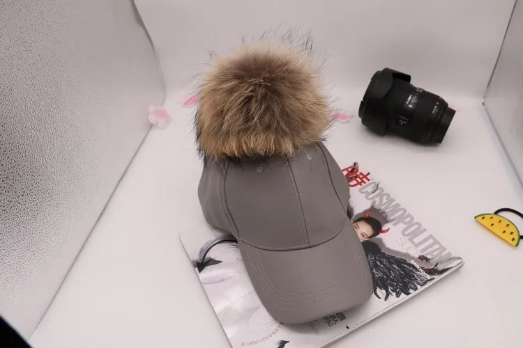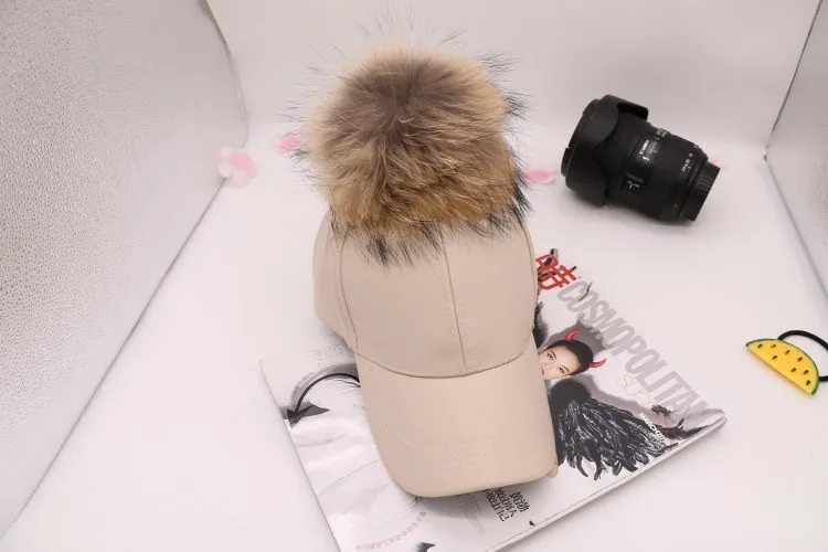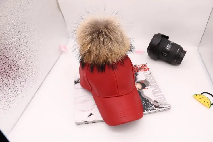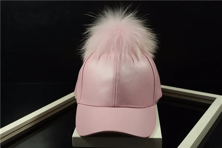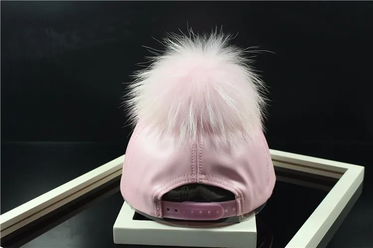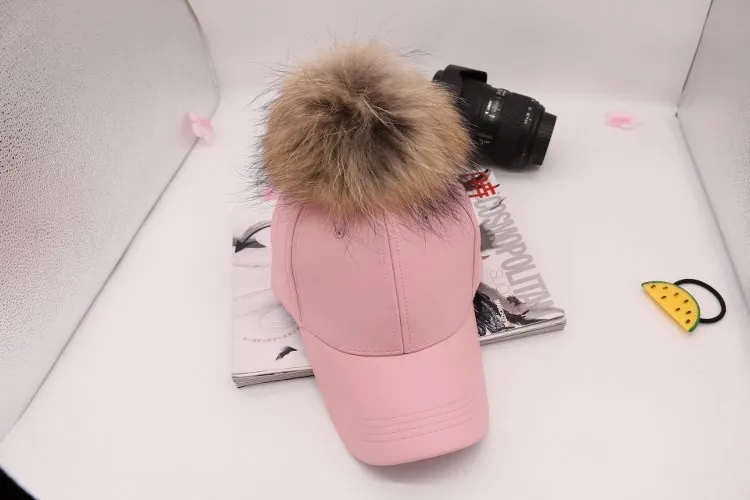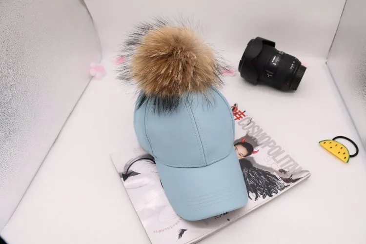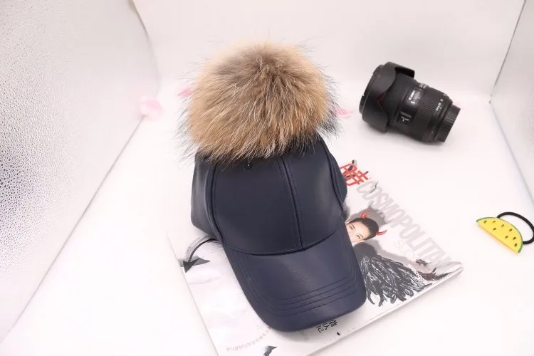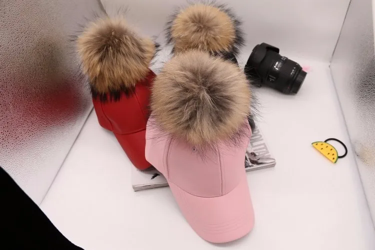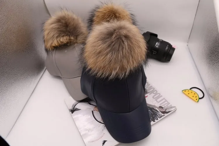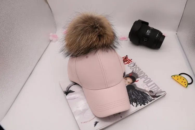 Korean Autumn winter raccoon fur women Hip Hop Baseball Cap Noble Hairball Leather Outdoor snapback Caps For Men Girls