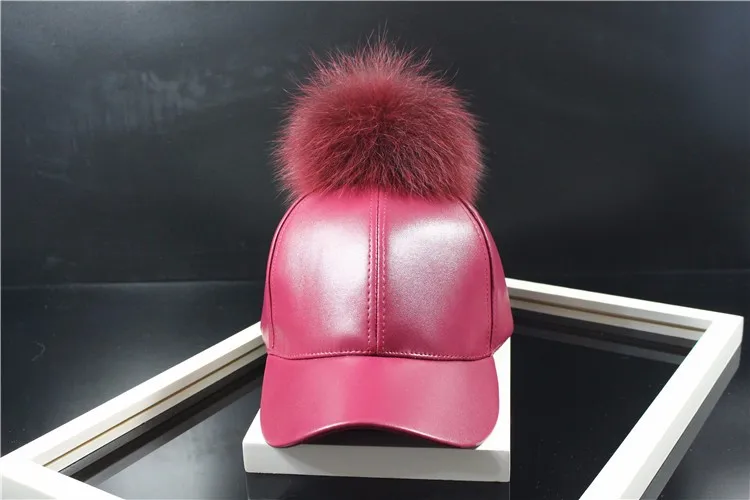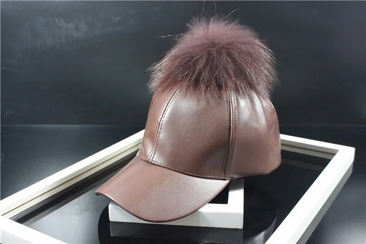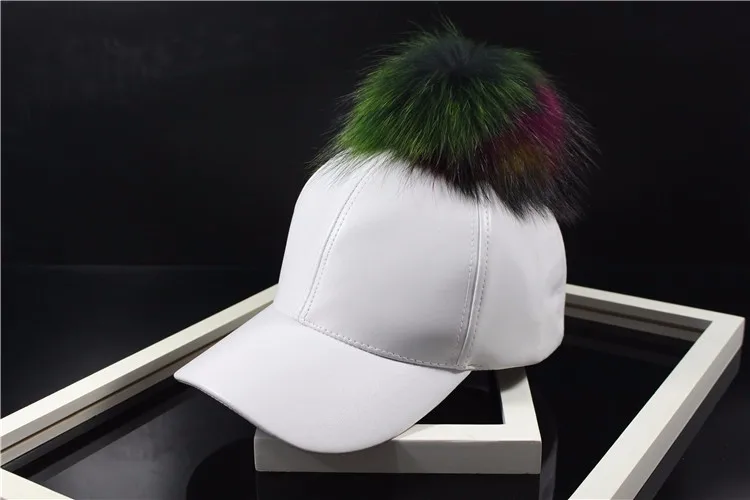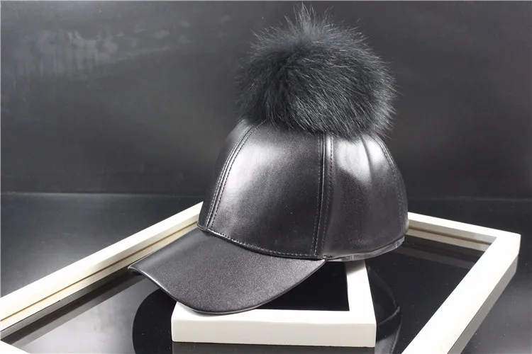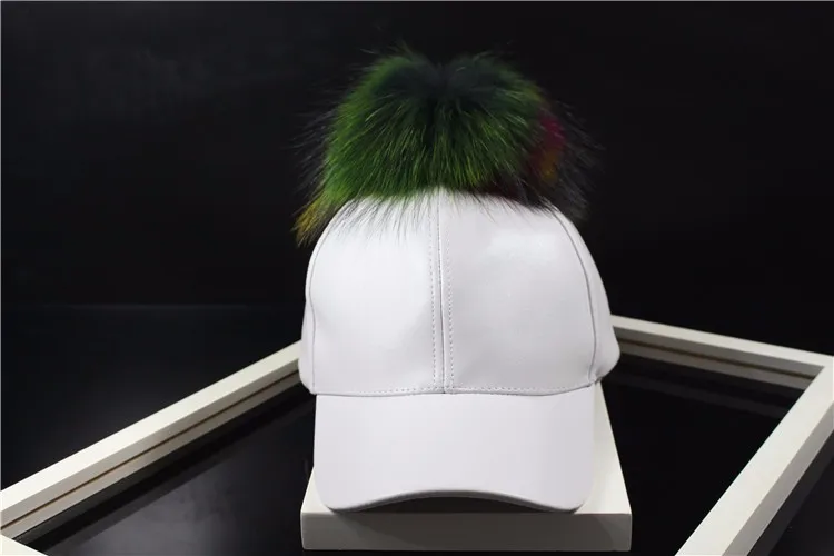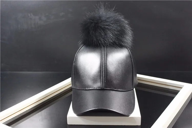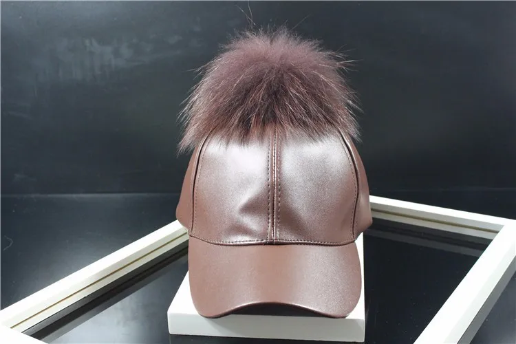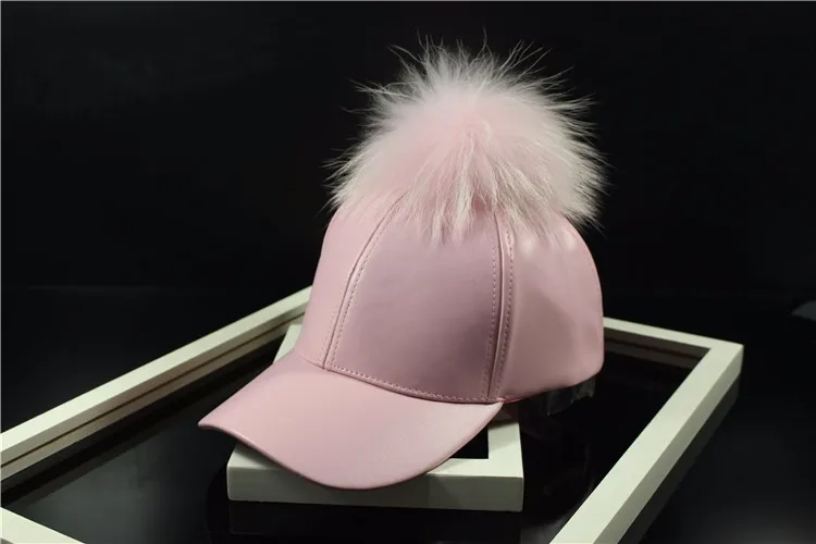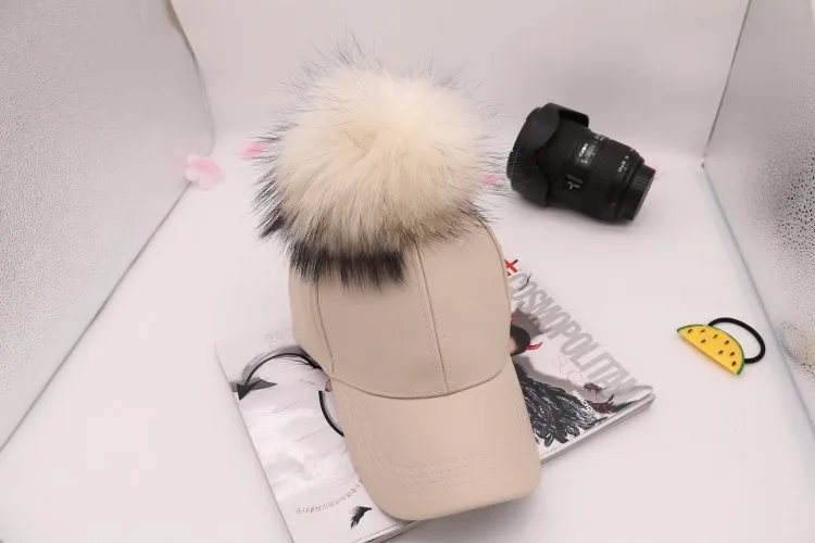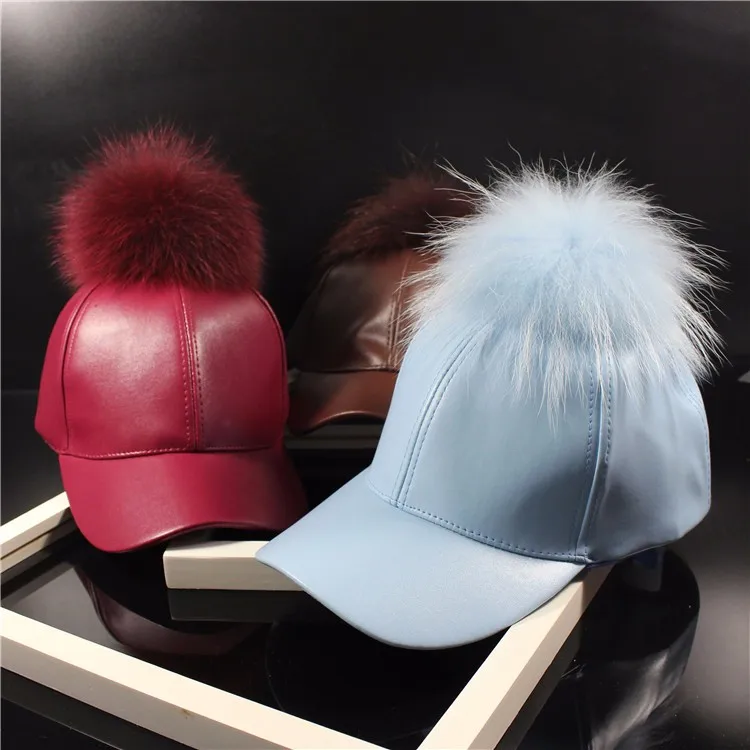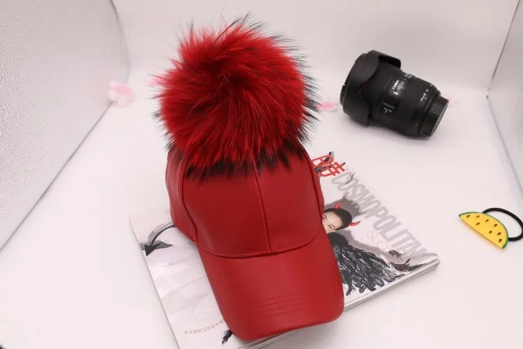 Korean Autumn winter raccoon fur women Hip Hop Baseball Cap Noble Hairball Leather Outdoor snapback Caps For Men Girls