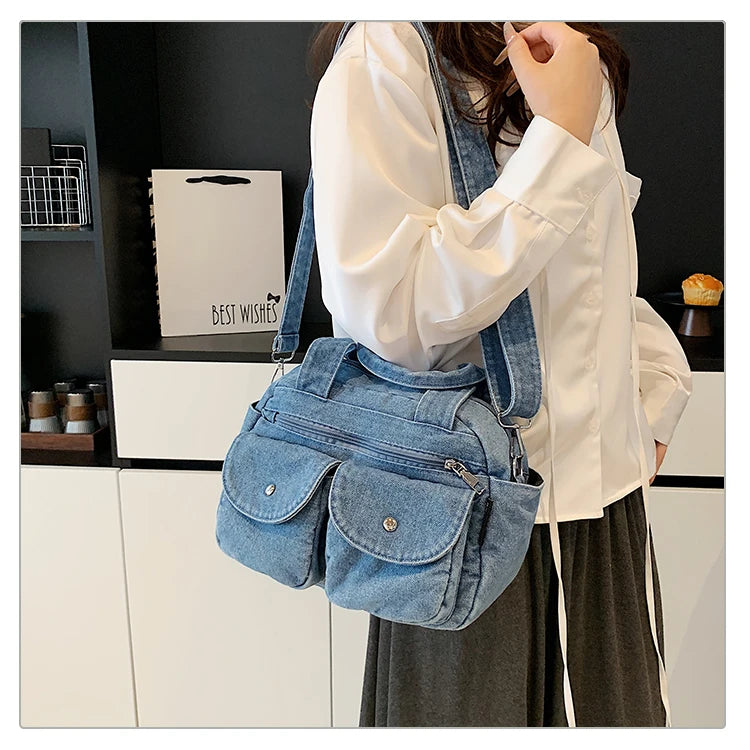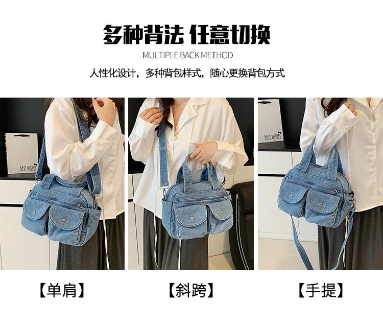 Fashion Casual Women's Crossbody Bag High Quality Denim Shoulder Bag Large Capacity Tote Bag Multi Functional Women‘s Handbags