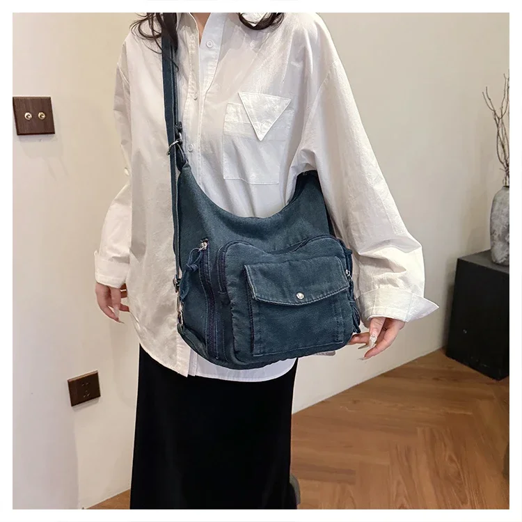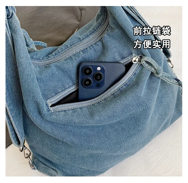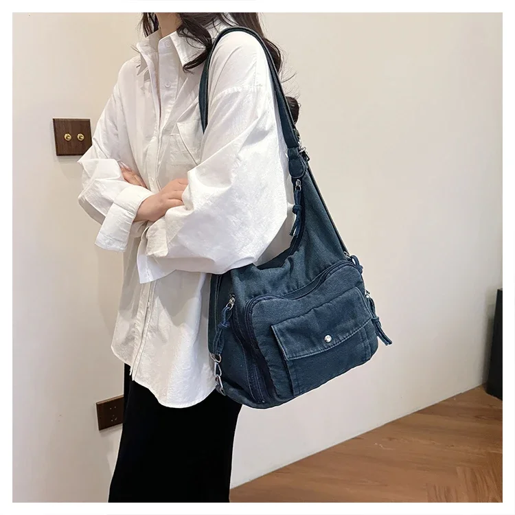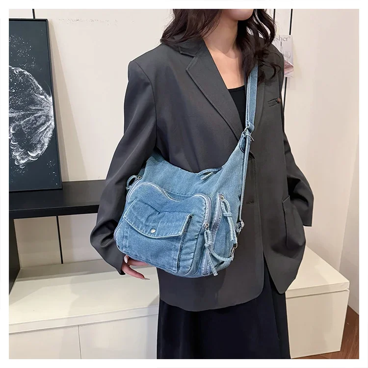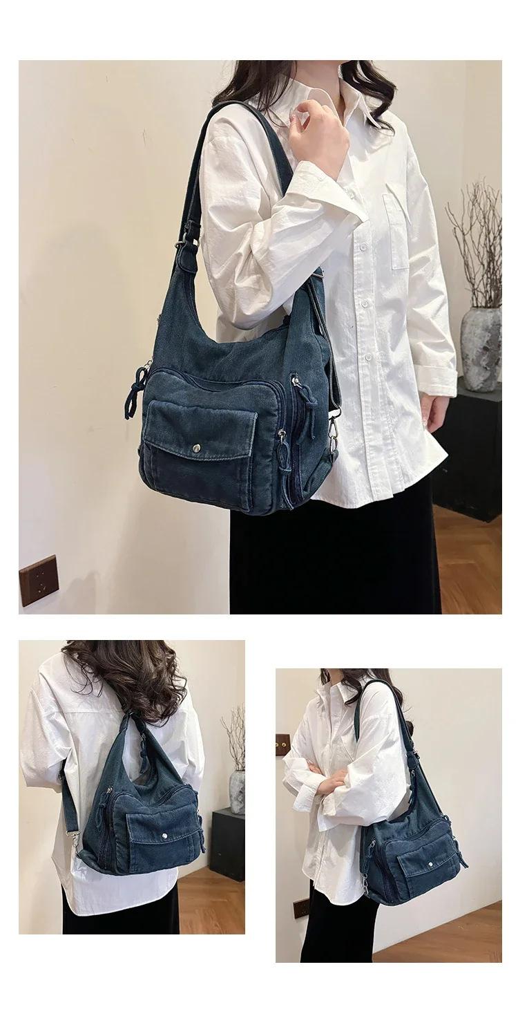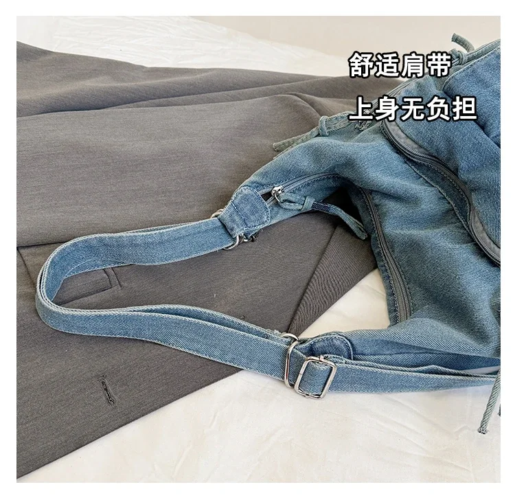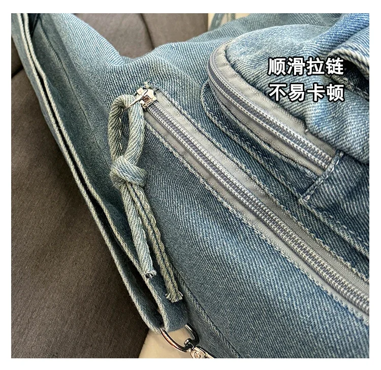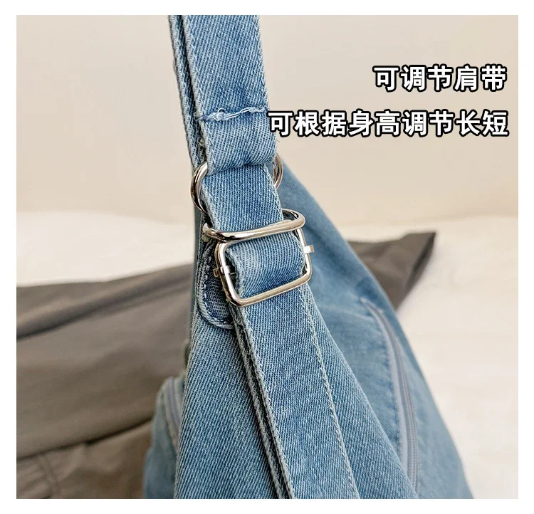 Fashion Zipper Denim Trendy Solid Color Shoulder Bag for Women 2026 High Quality Large Capacity Versatile Women's Crossbody Bag