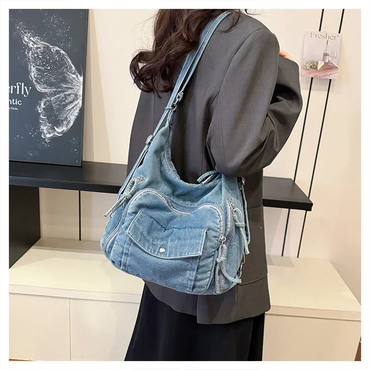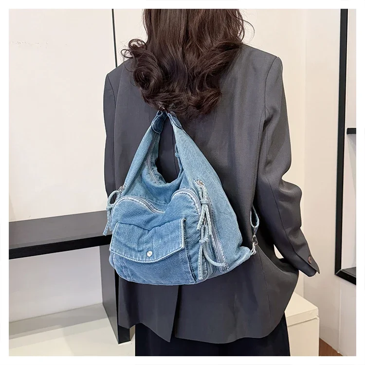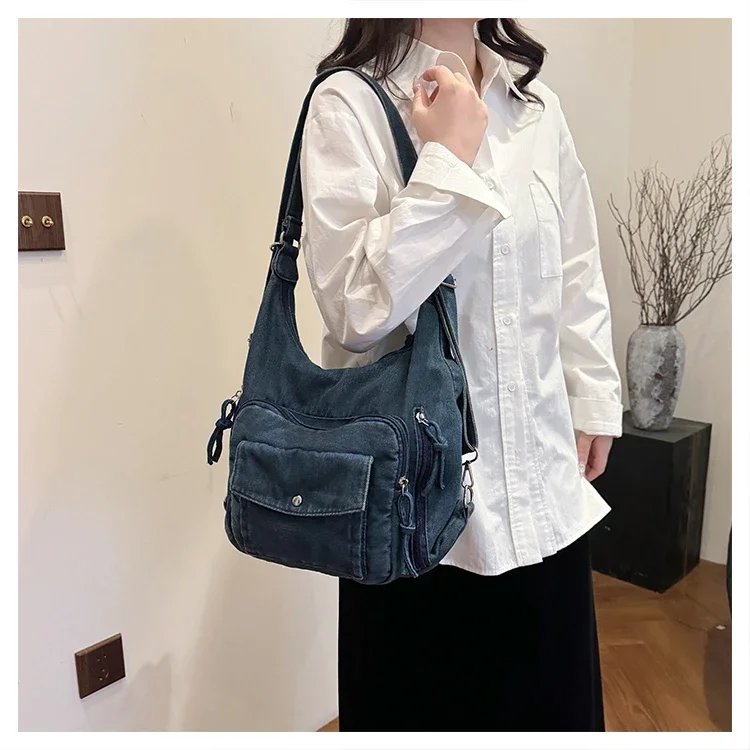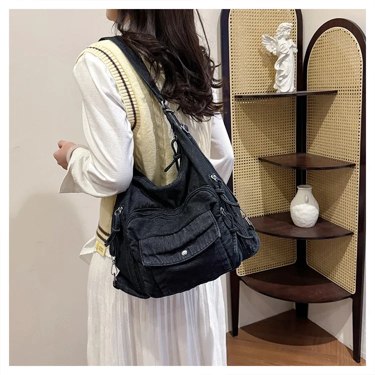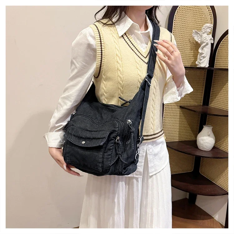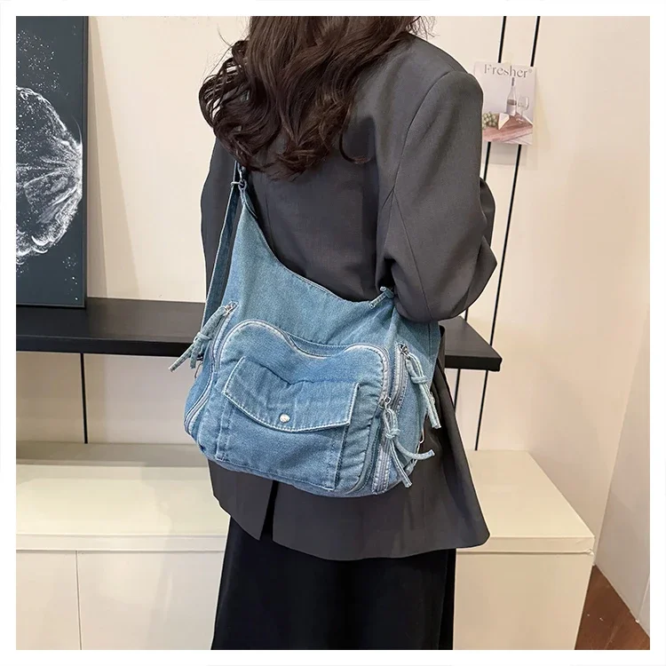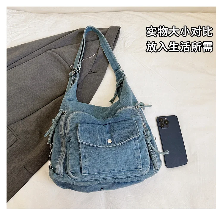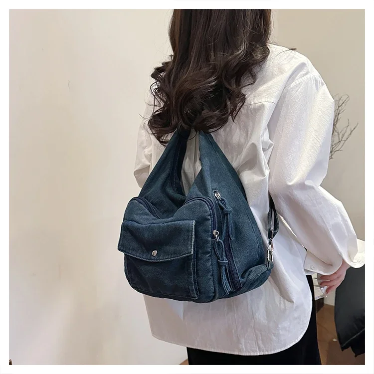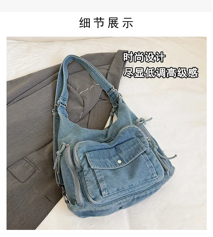 Fashion Zipper Denim Trendy Solid Color Shoulder Bag for Women 2026 High Quality Large Capacity Versatile Women's Crossbody Bag