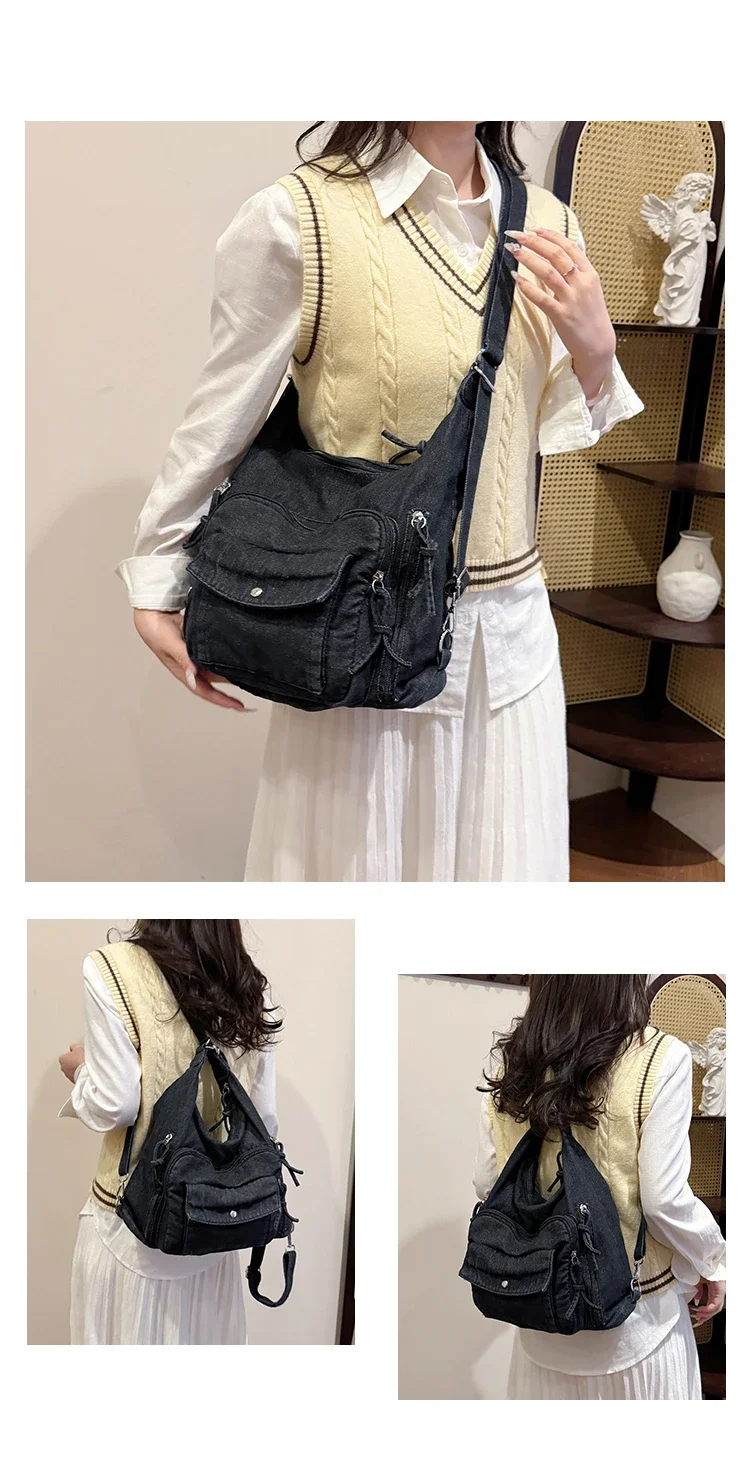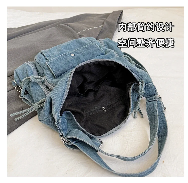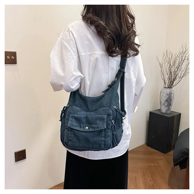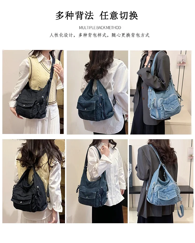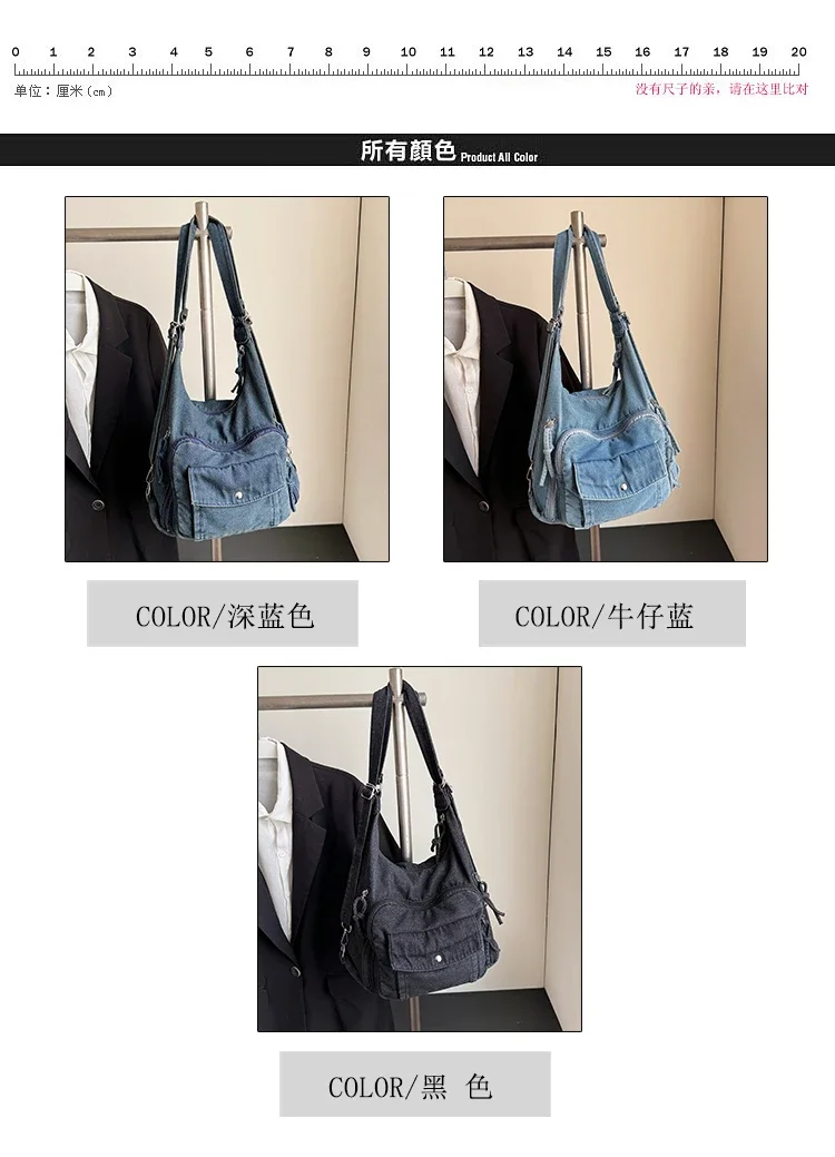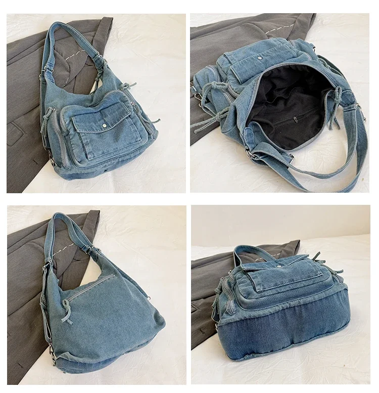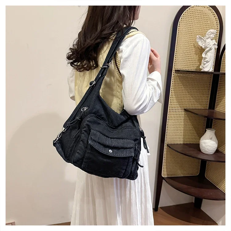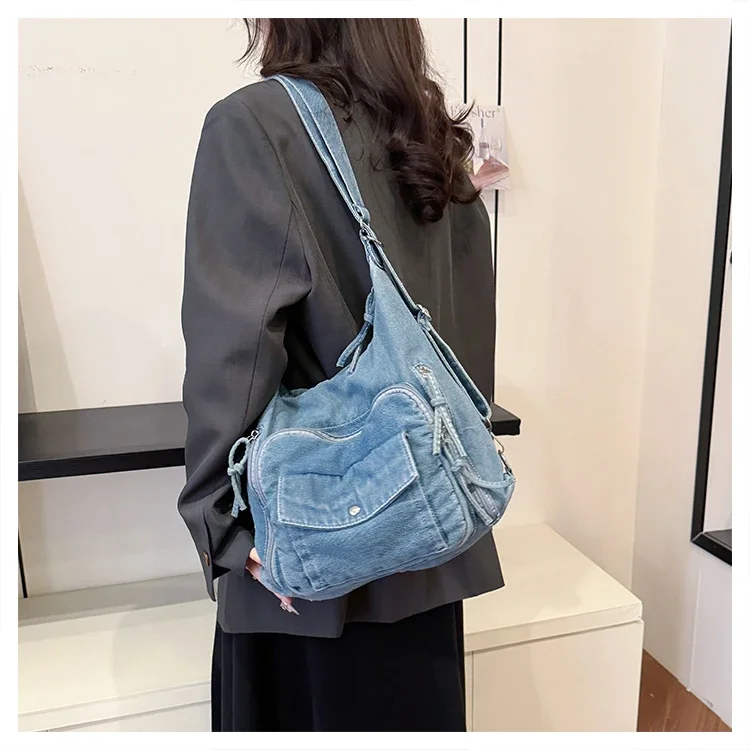 Fashion Zipper Denim Trendy Solid Color Shoulder Bag for Women 2026 High Quality Large Capacity Versatile Women's Crossbody Bag