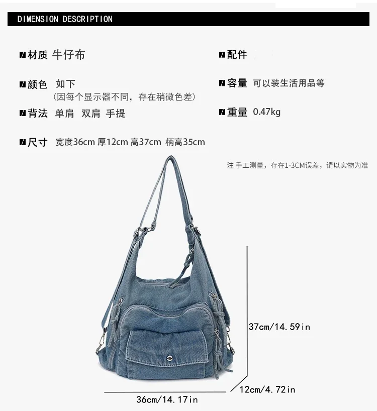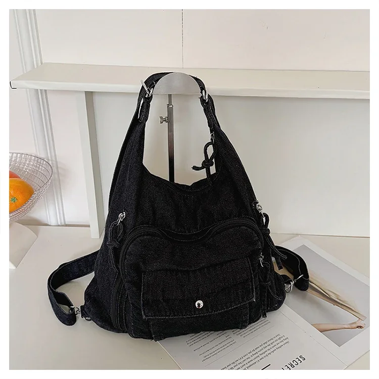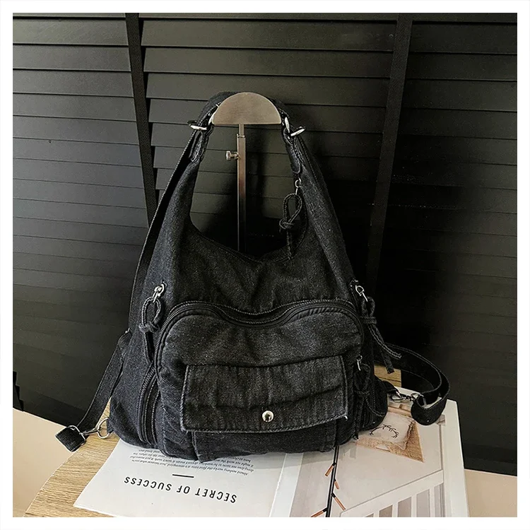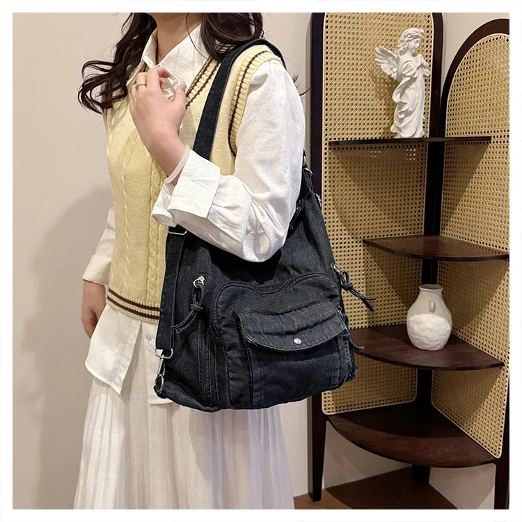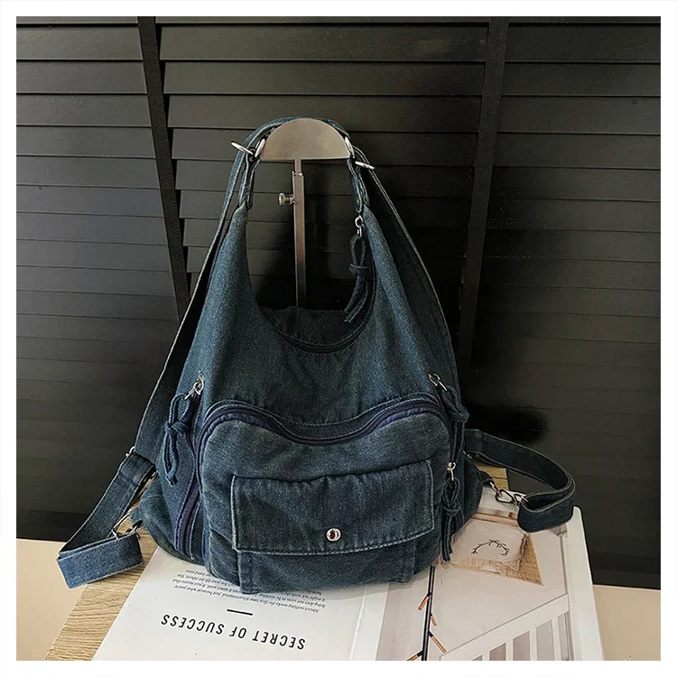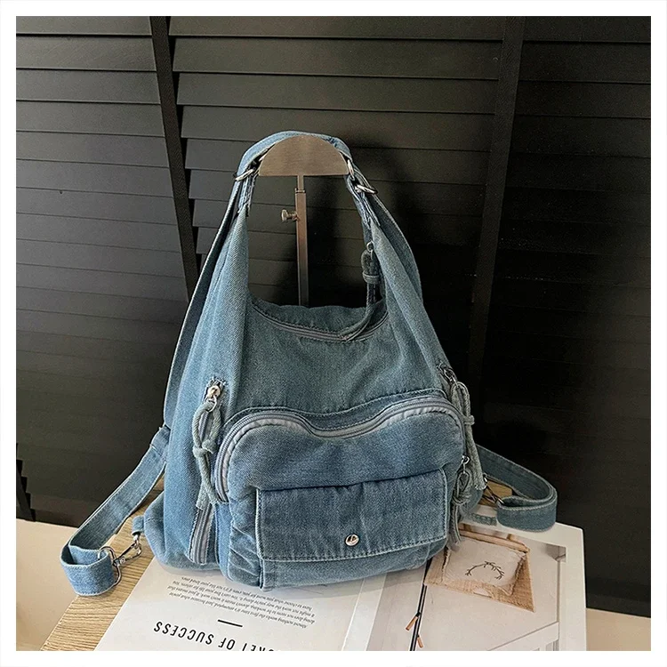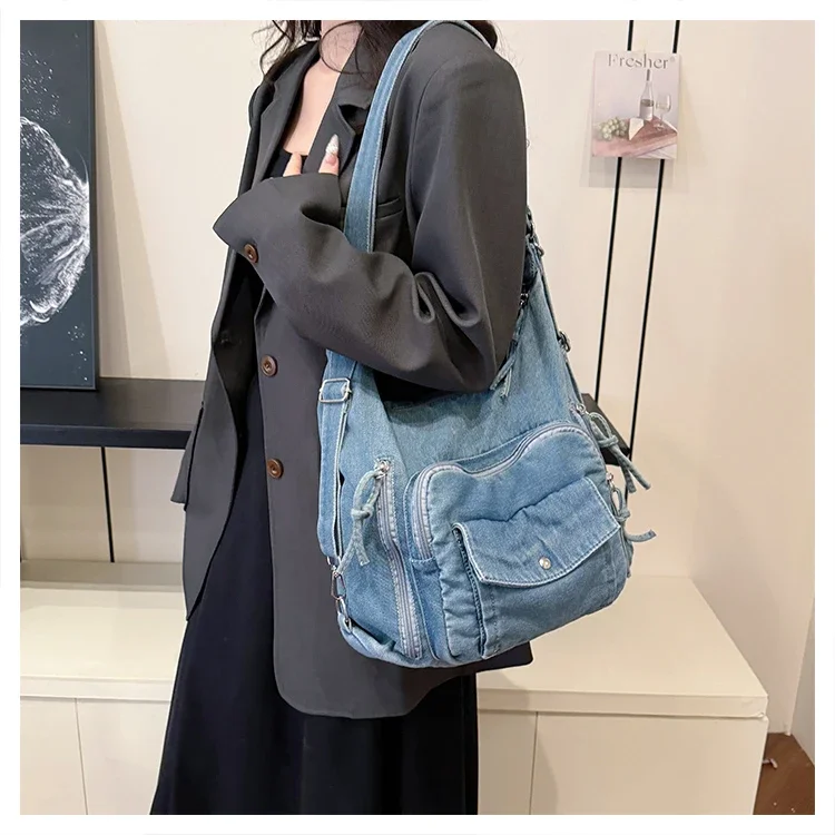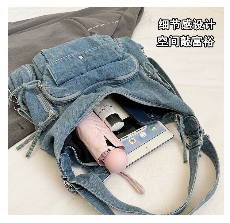 Fashion Zipper Denim Trendy Solid Color Shoulder Bag for Women 2026 High Quality Large Capacity Versatile Women's Crossbody Bag