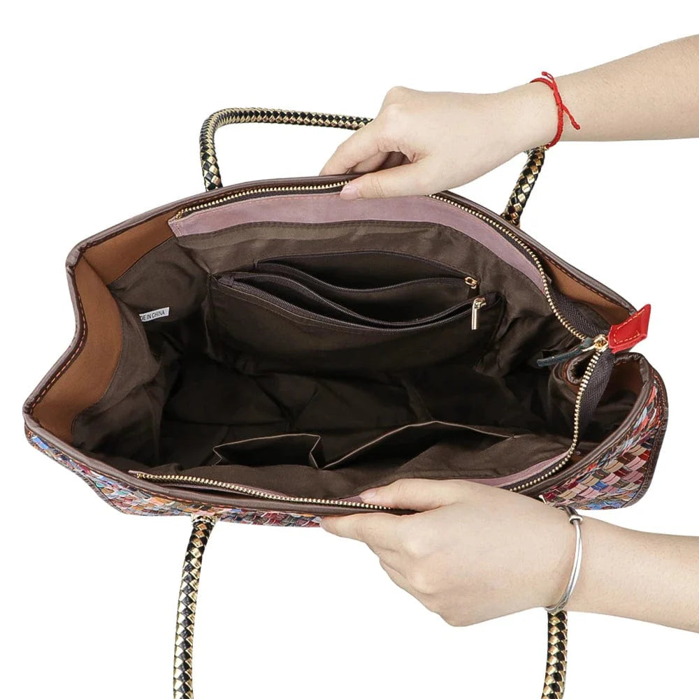 Le fourre-tout multicolore en cuir tressé artisanal incarne le savoir-faire ancestral qui traverse les âges. Conçu à partir de cuir véritable, il célèbre l’art des maîtres artisans, chaque tressage racontant une histoire de créativité et de passion. Sa palette vibrante de couleurs et la précision des détails font de le objet une pièce unique qui saura captiver les regards et révéler une personnalité audacieuse.