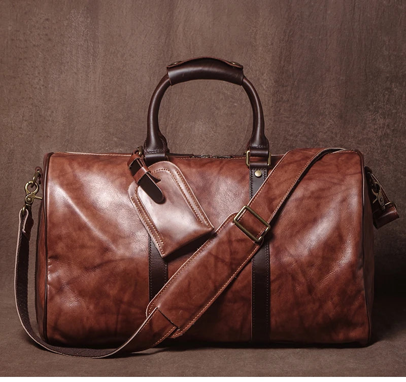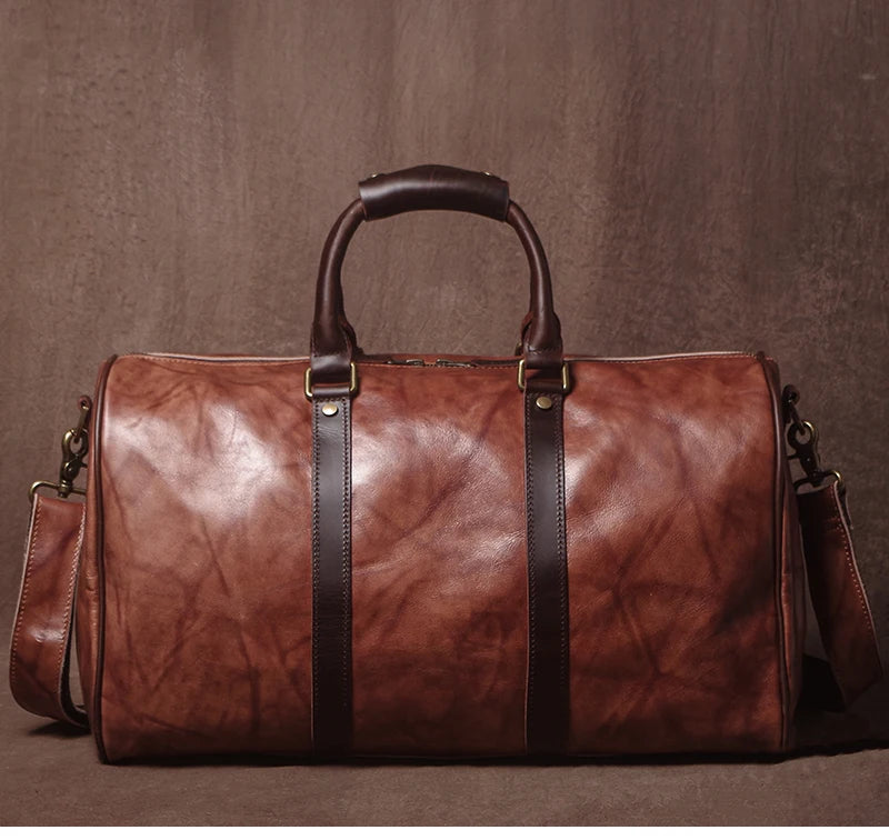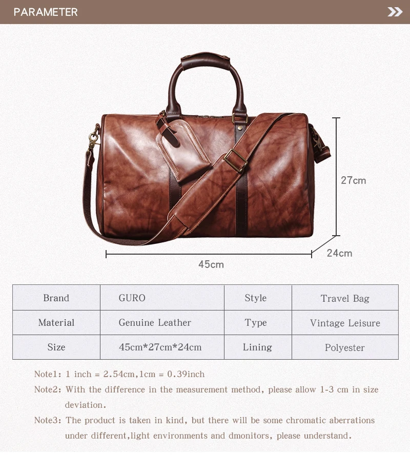 GURO High Quality Genuine Leather Travel Bag Men's Weekend Gym Handbag Luxury Cowhide Luggage Bag Vintage Shoulder Crossbody Bag