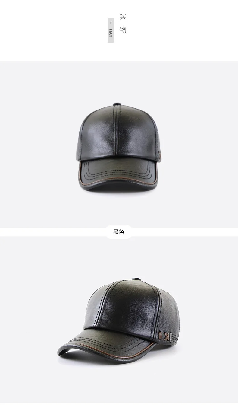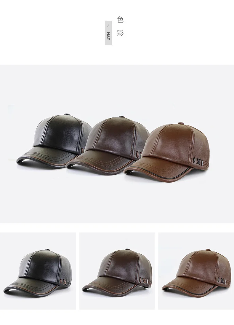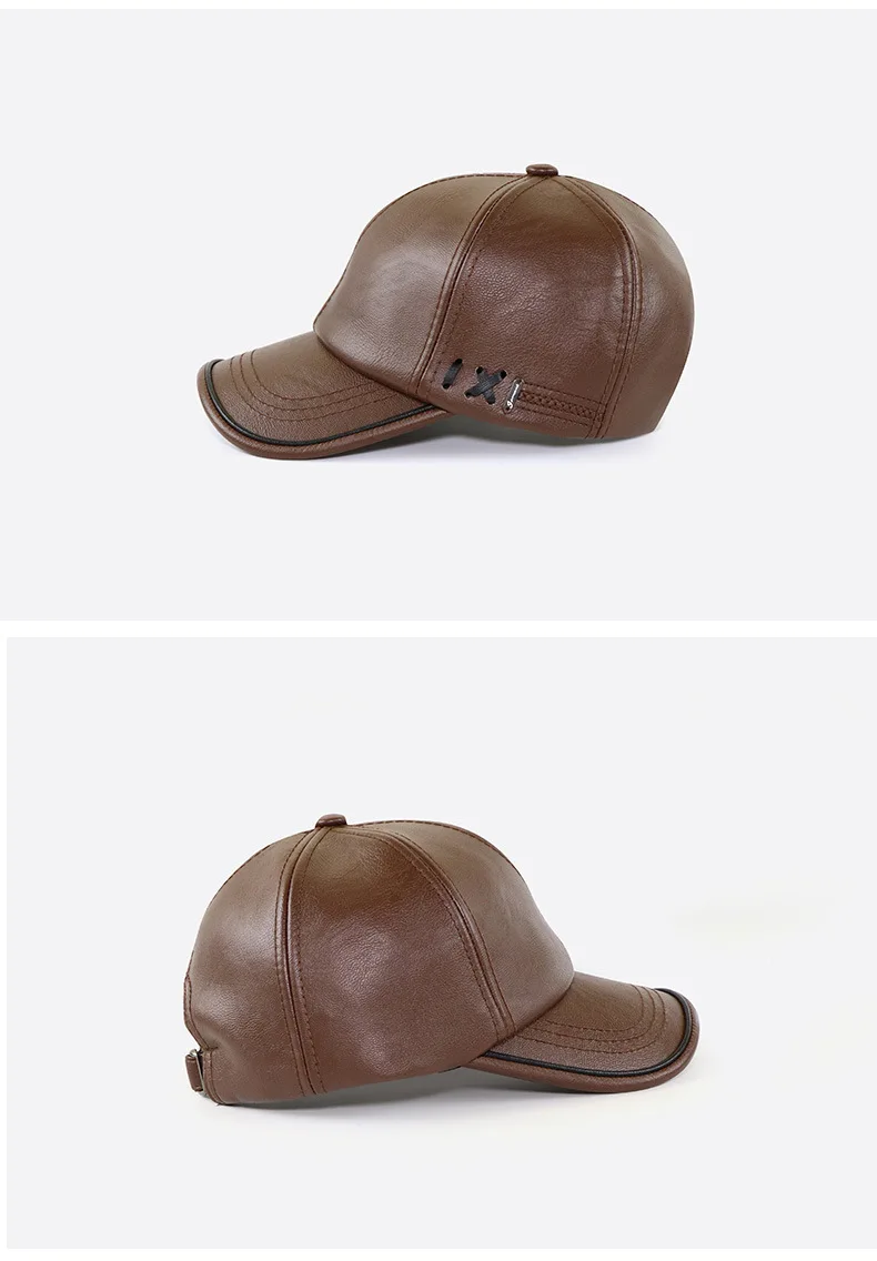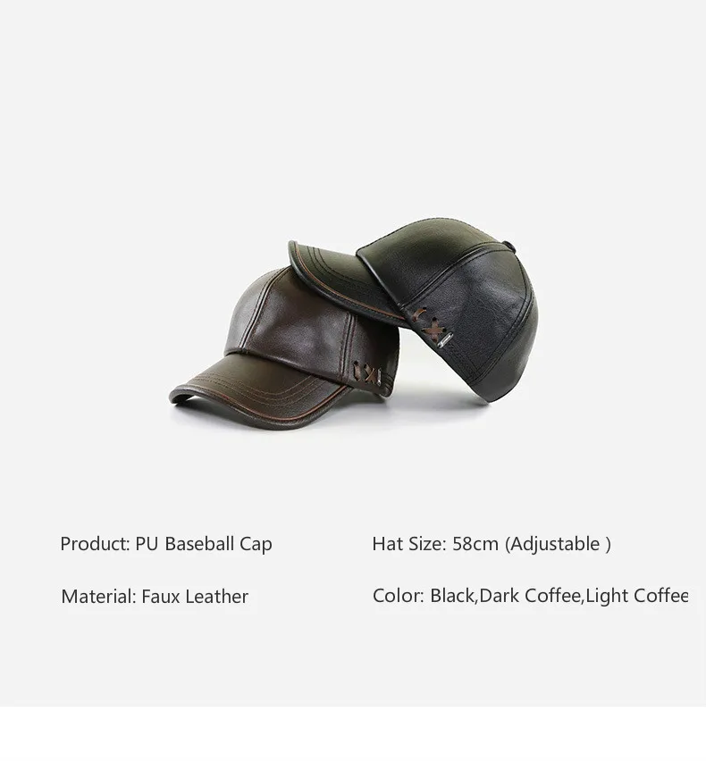 High Quality PU Leather Baseball Cap Men Autumn Winter Men's Hat for Middle Aged and Elderly People Father's Day Gift