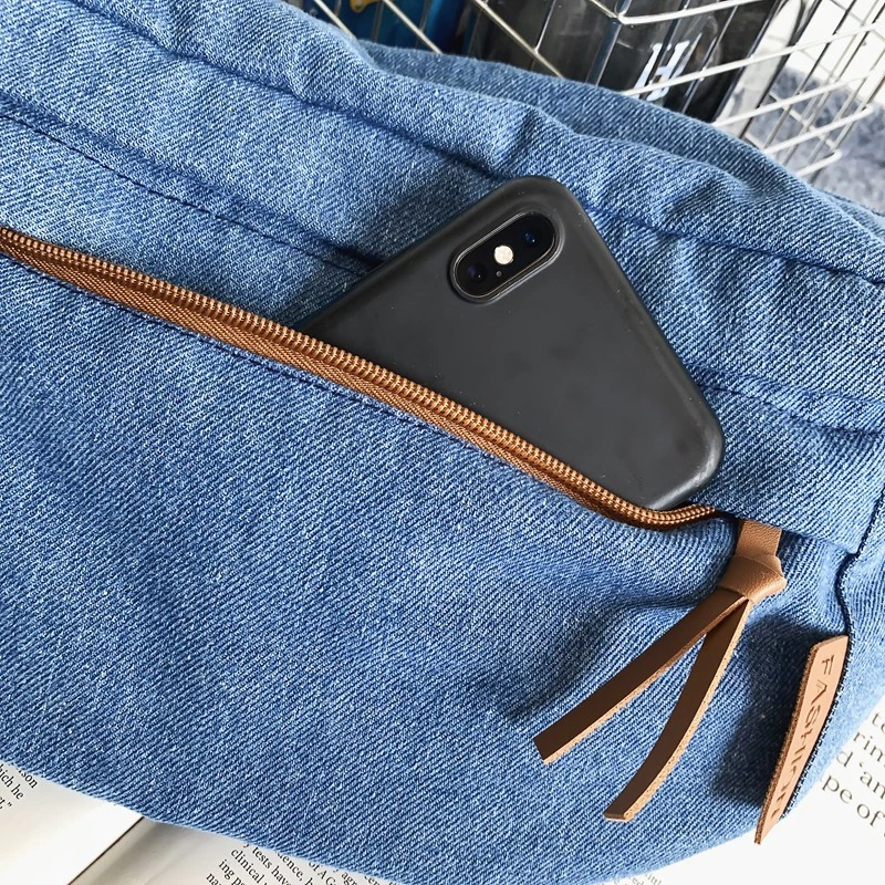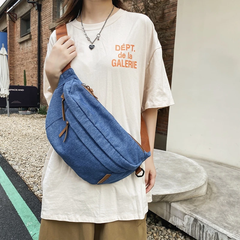 Large Capacity Waist Bag Denim Fanny Pack For Women Big Blet Bag Multi-Functional Chest Bags Banana Waist Pack Casual Travel Bag
