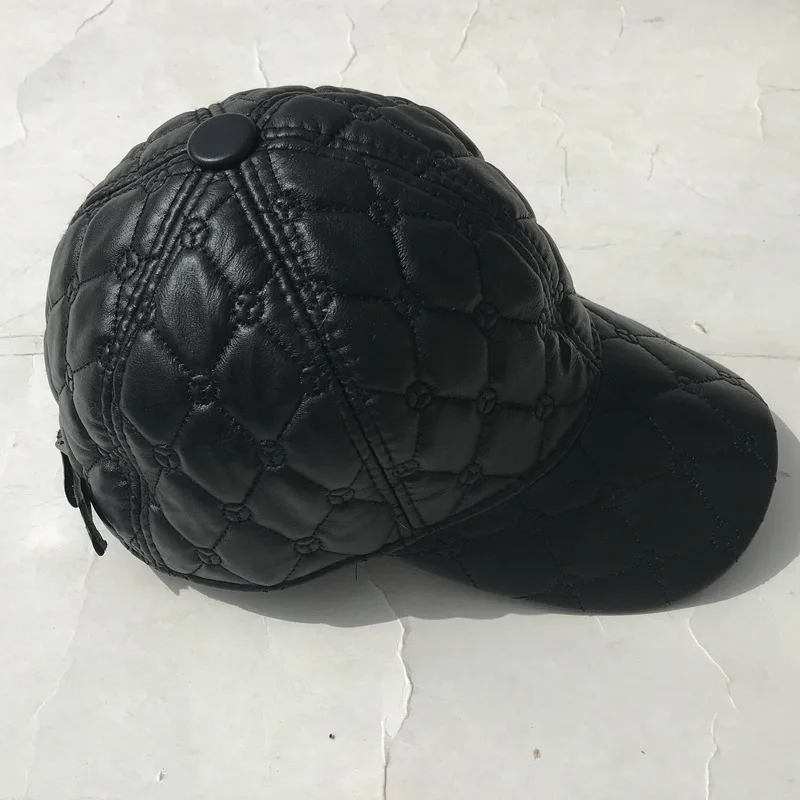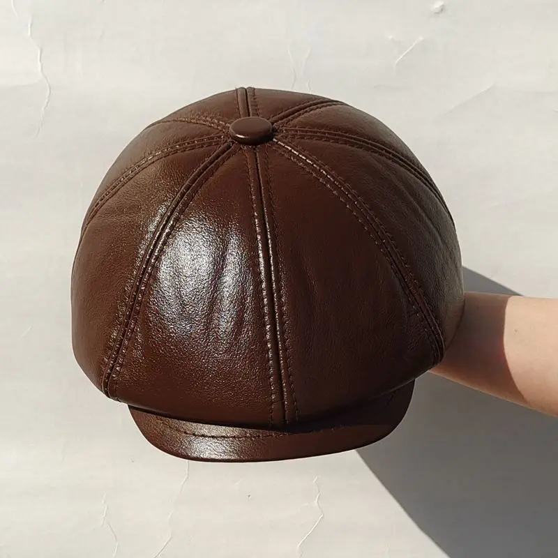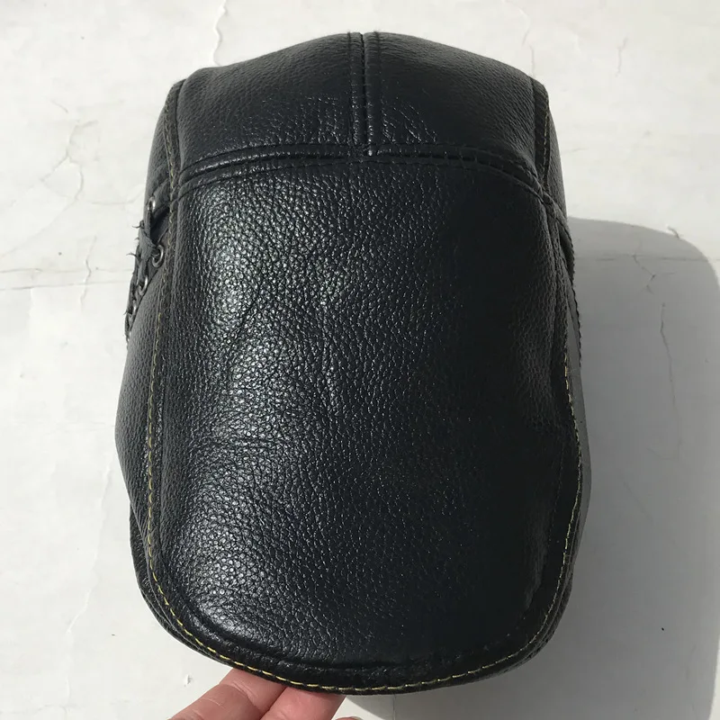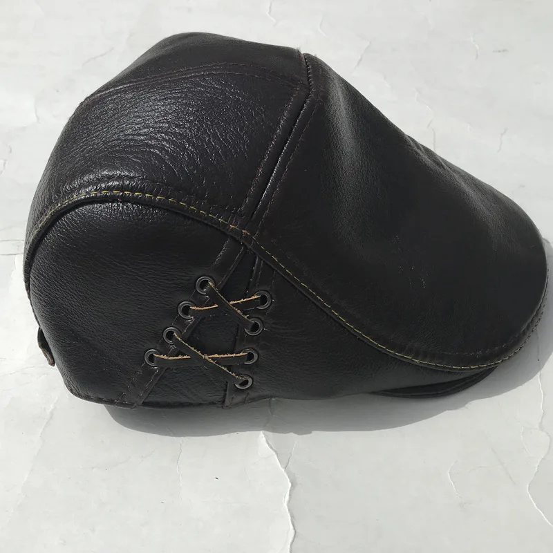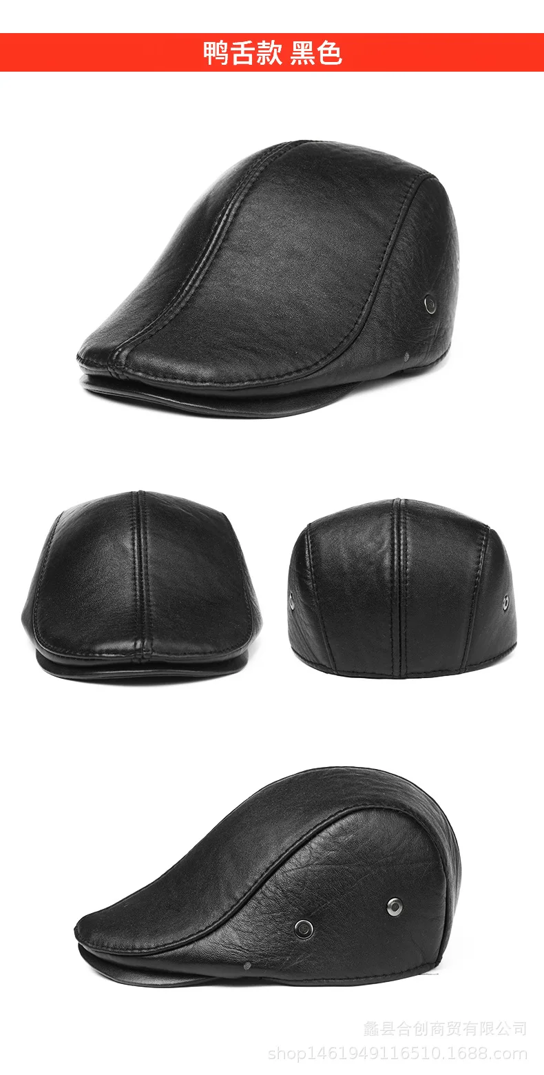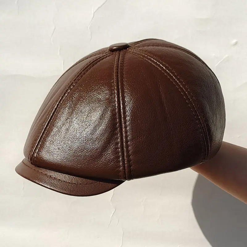 Mens Leather Cap Winter Warm Real Cowhide Baseball Hat With Ear Flaps For Outdoor Mature Men