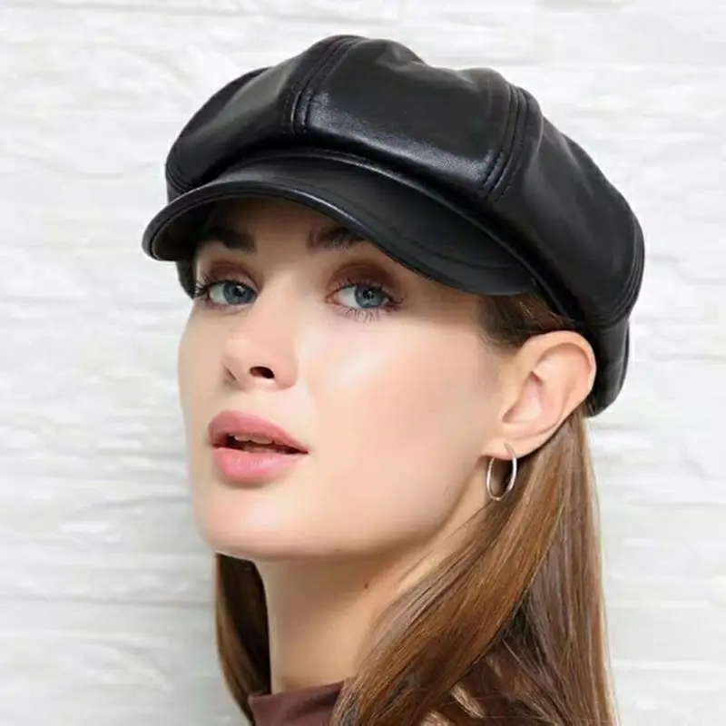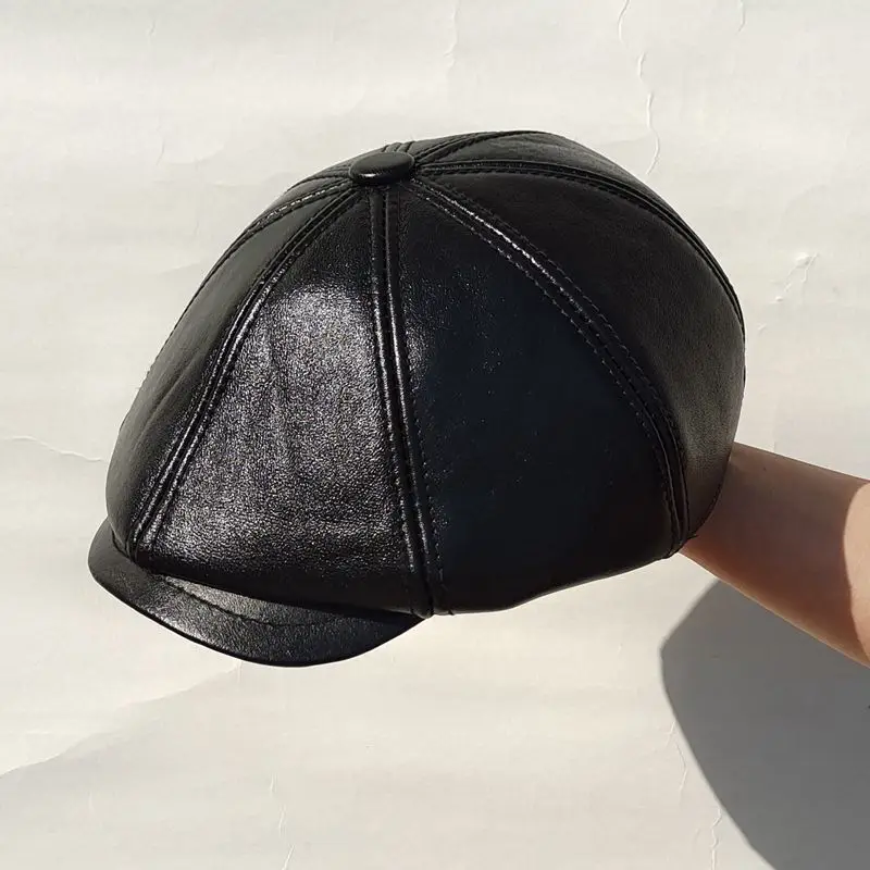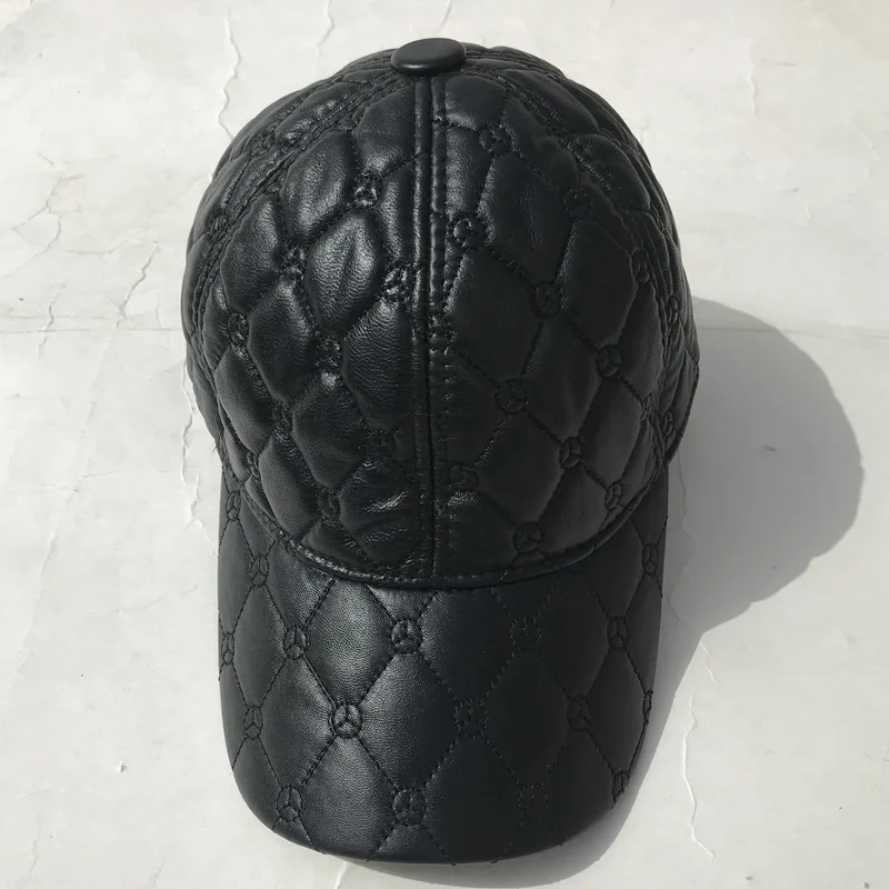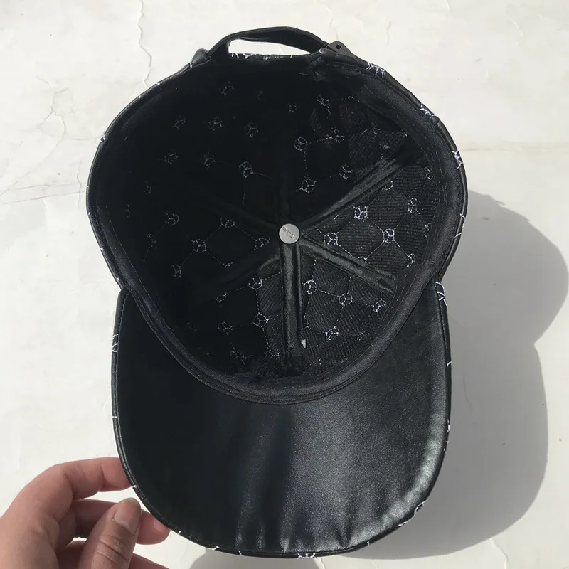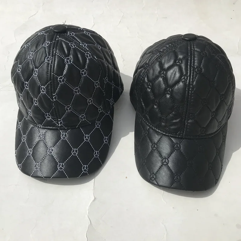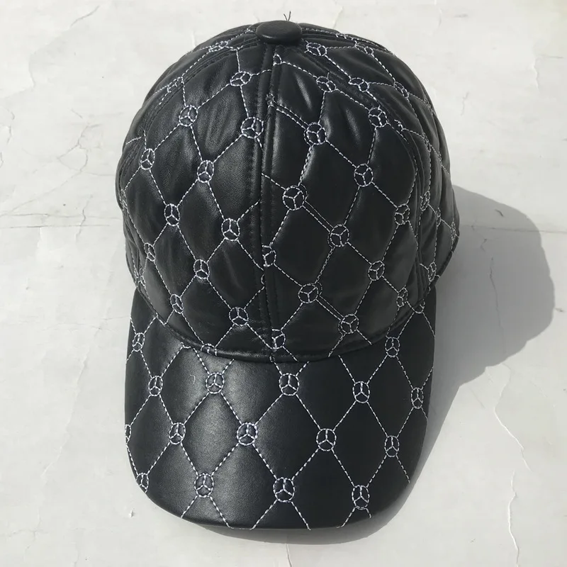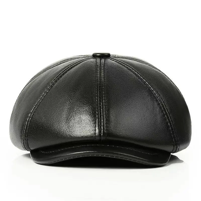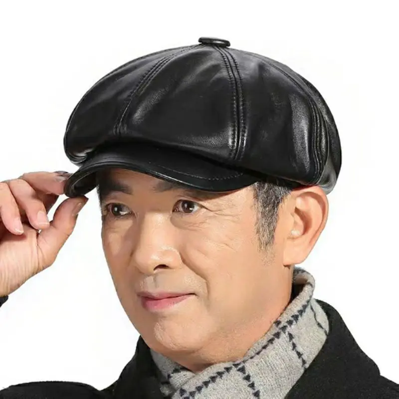Mens Leather Cap Winter Warm Real Cowhide Baseball Hat With Ear Flaps For Outdoor Mature Men