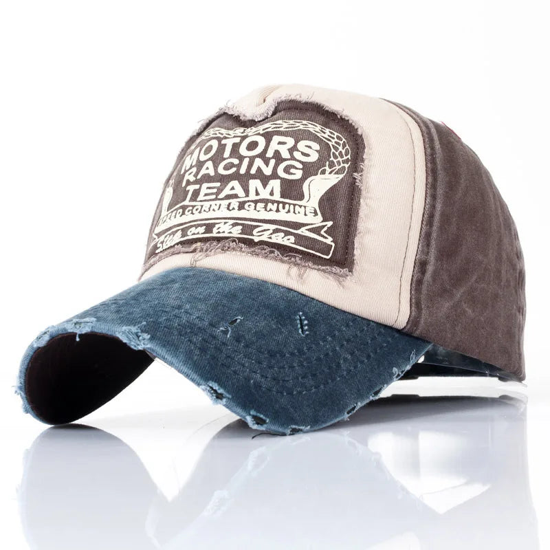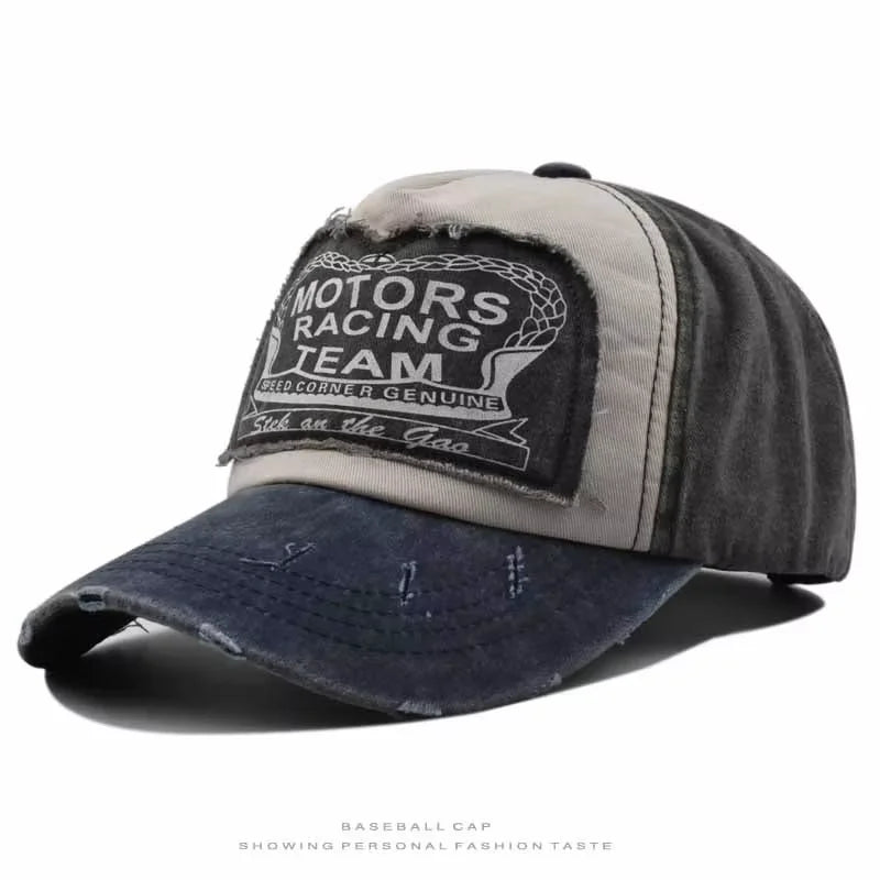 MOTOS Fashion Patchwork Color Washed Denim Baseball Cap Coated Snapback Hip Hop Hat for Outdoor Sun Protection