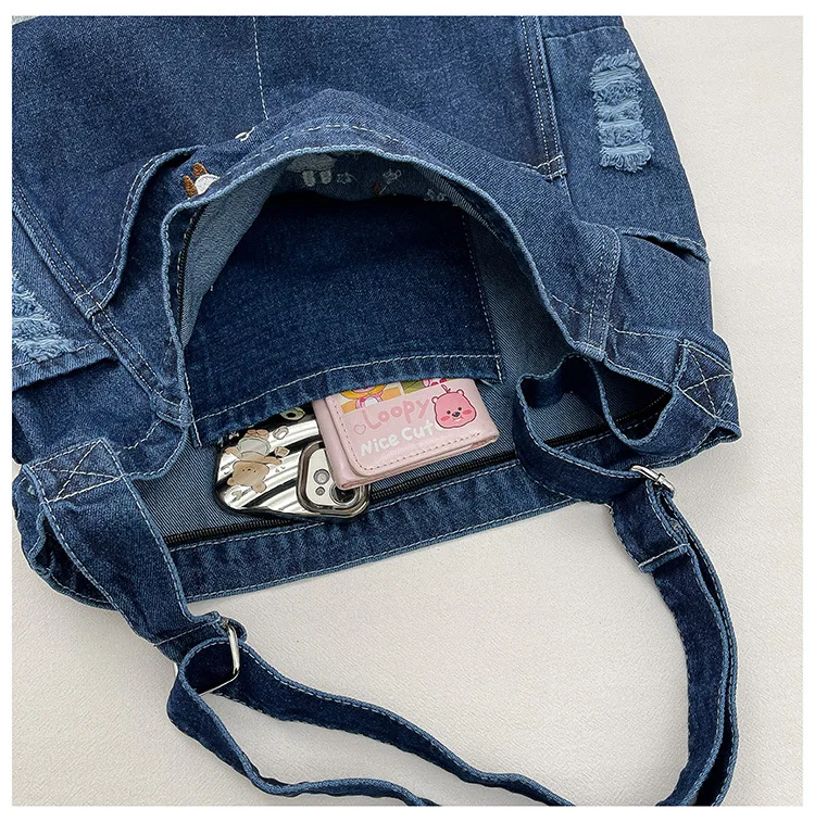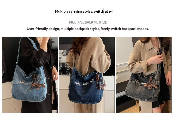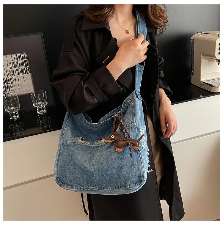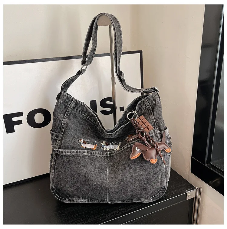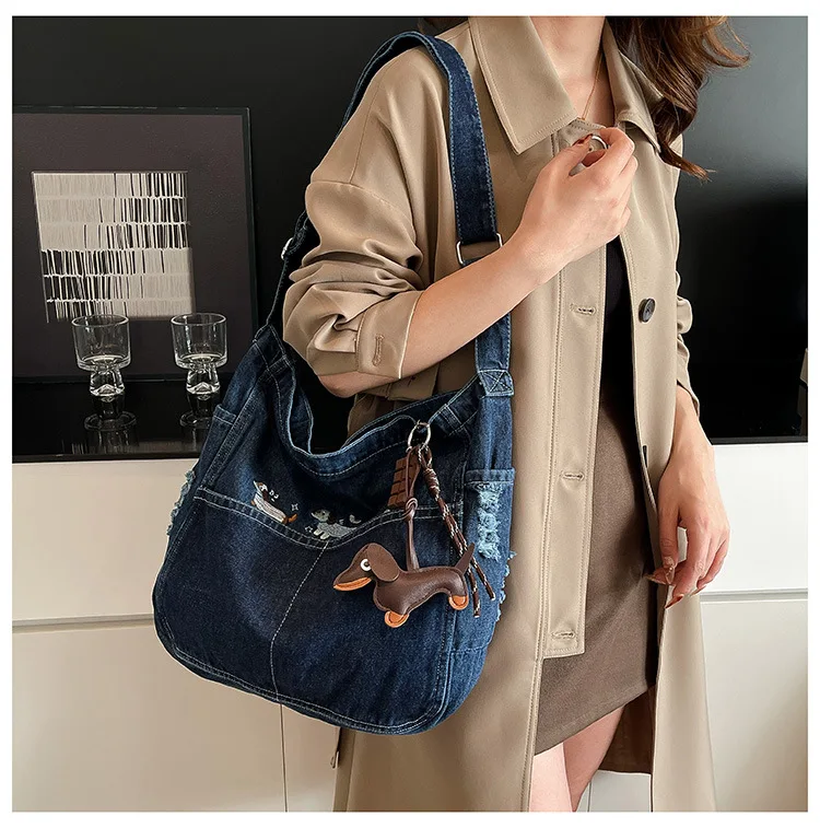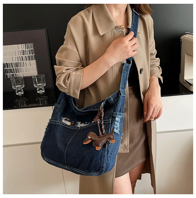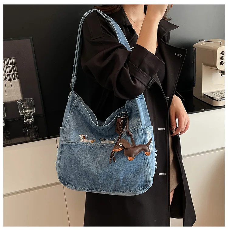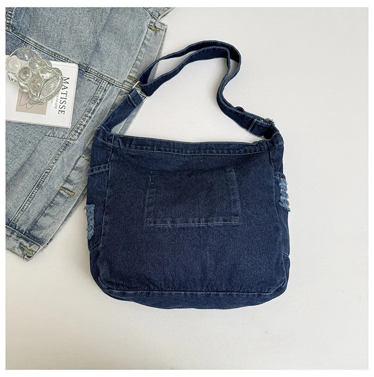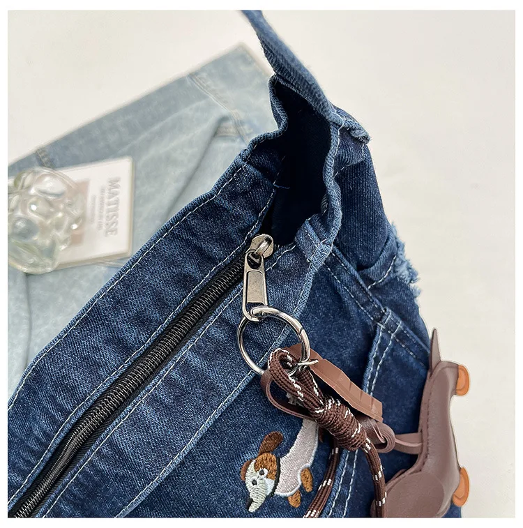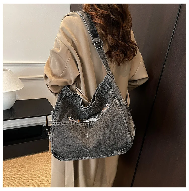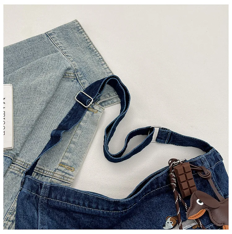 New Spring Women Crossbody Bag Fashion Embroidery Denim Shoulder Bag Casual Retro Pure Color Versatile Texture Commuting Bag