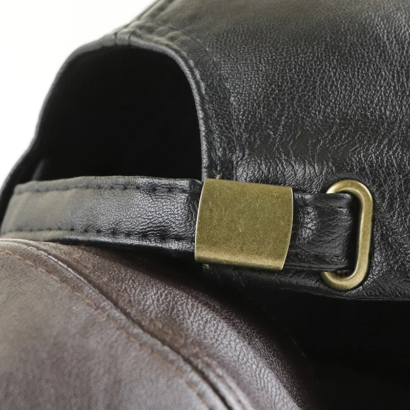 PU Leather Thicken Warm Vintage Baseball cap for Men Autumn Winter