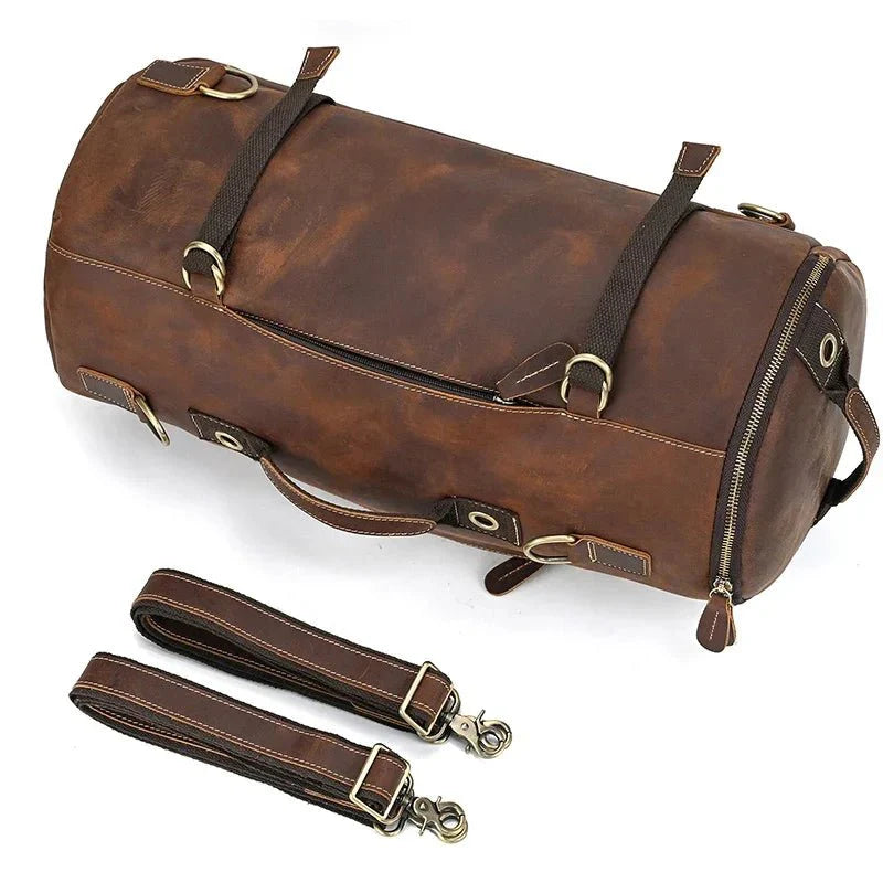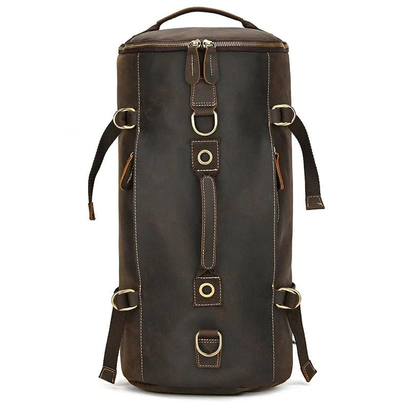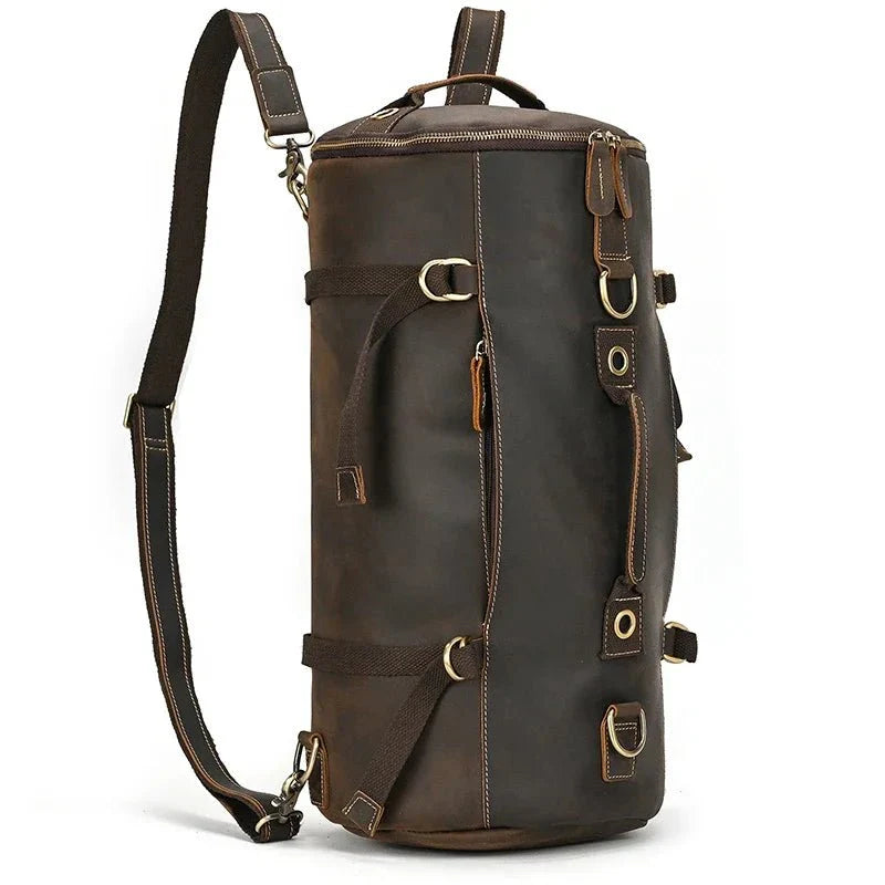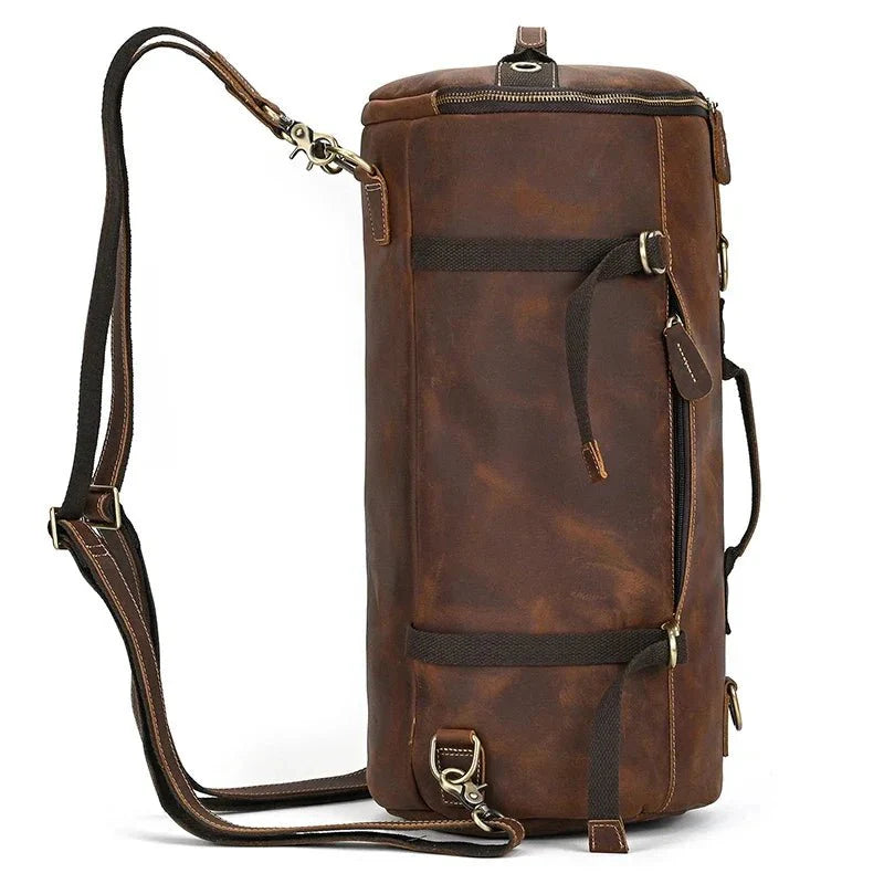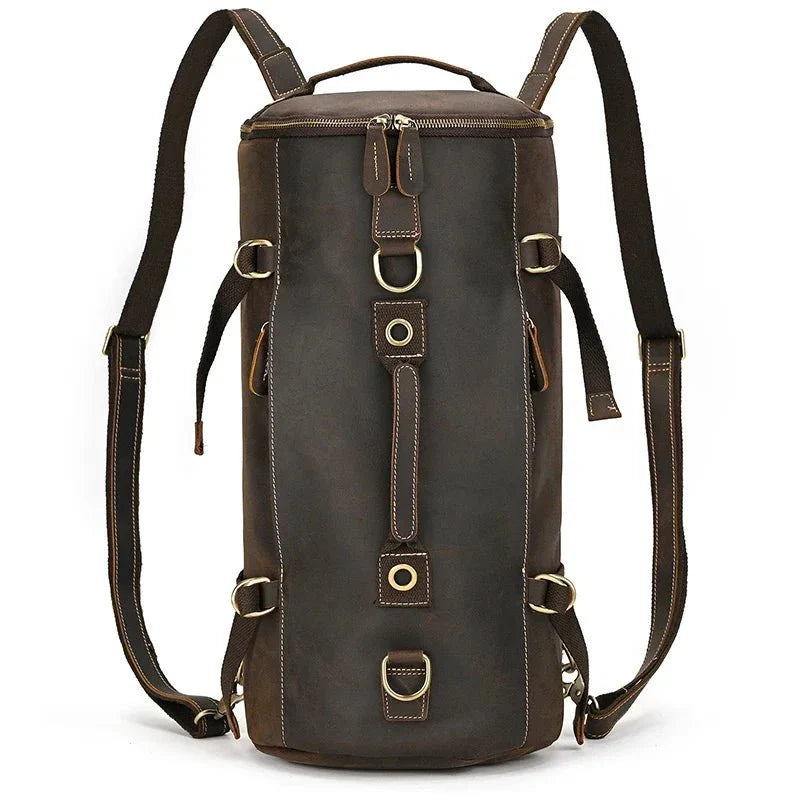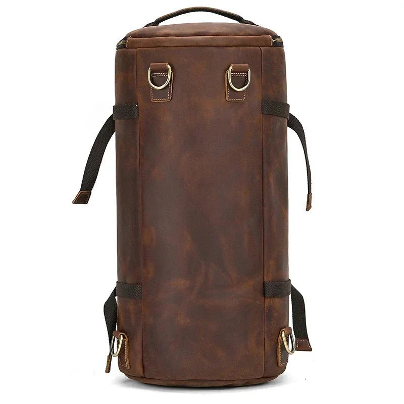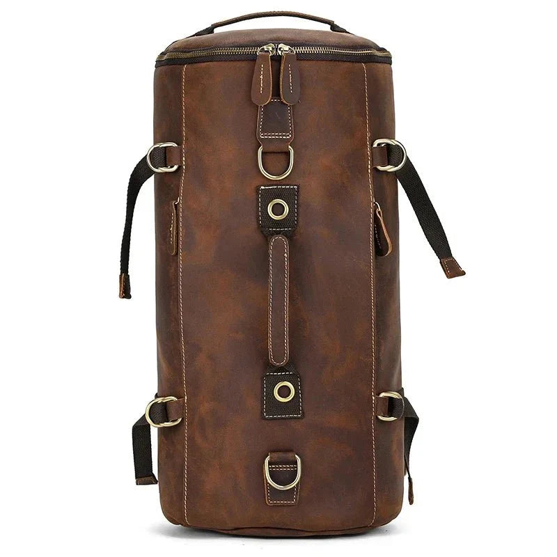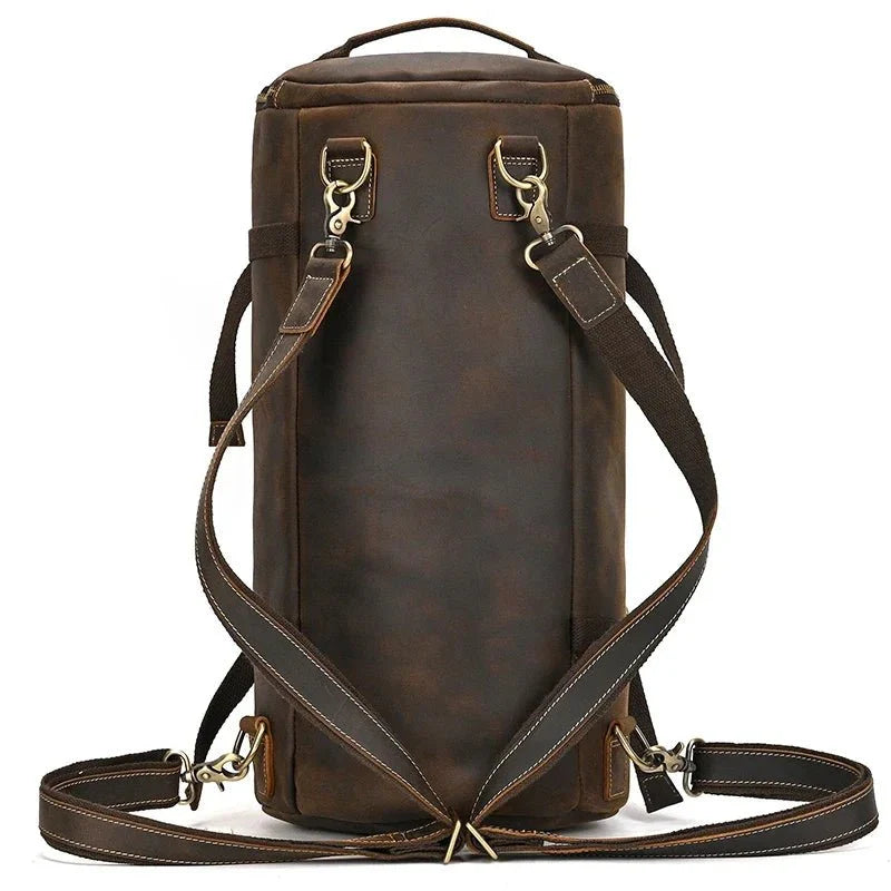 Sac à Dos Cylindrique en Cuir Patiné – Style Rustique Aventure