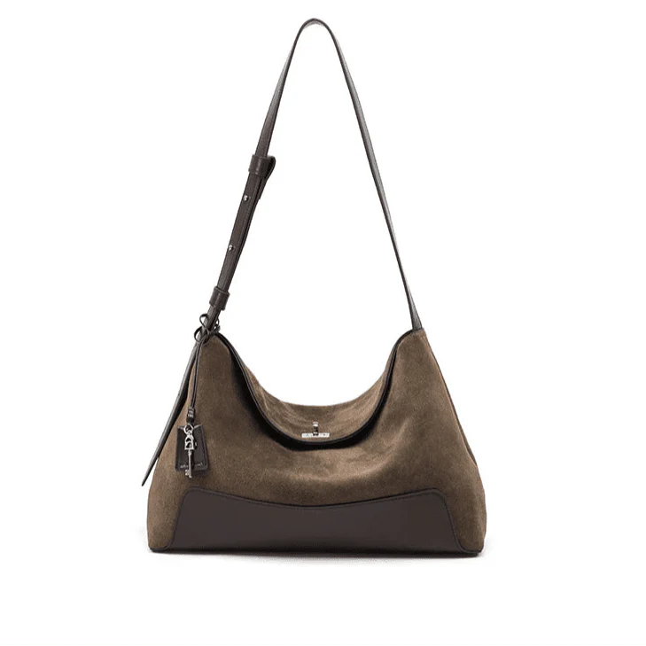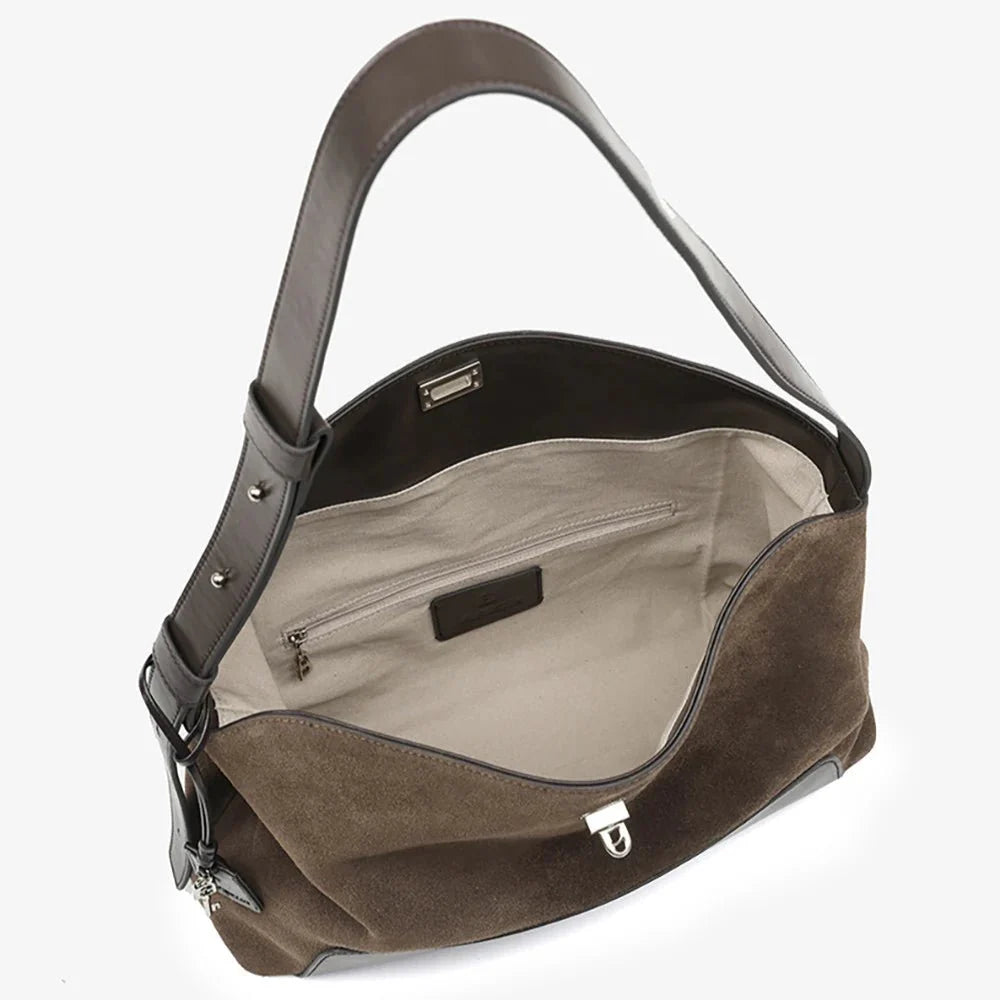 Sac Hobo Marron Arrondi avec Détails Métalliques