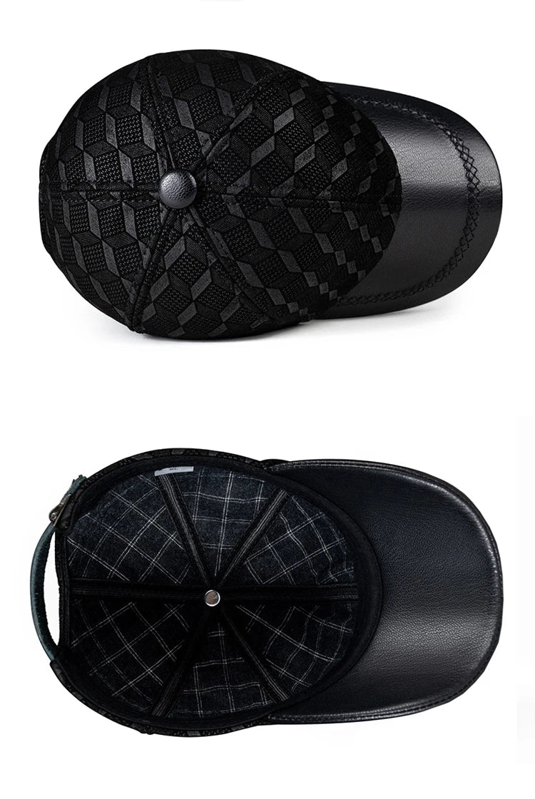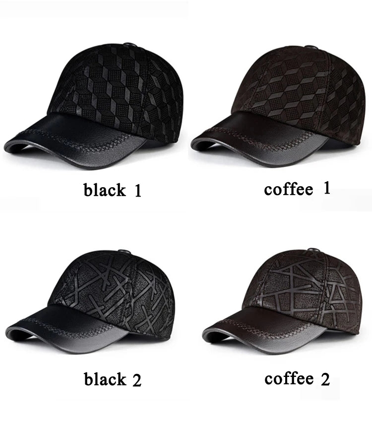 Suede Leather Cap For Men Winter Hat Male Cashmere Sheepskin Bound Korean Baseball Caps Casual Golf Running Printed Gorras