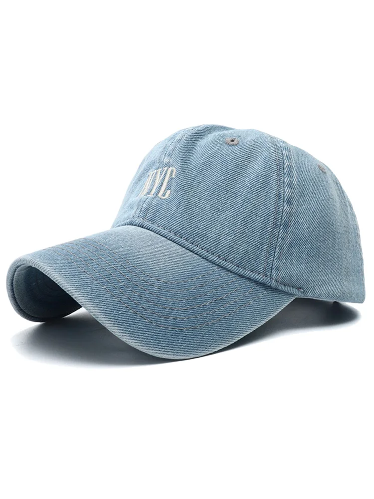 Unisex Vintage NYC Embroidery Washed Denim Baseball Cap Adjustable Snapback Hat Sun Protection Visor Hats for Men Women
